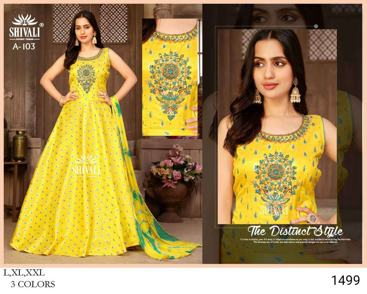 BOOK CATALOGUE SHIVALI SILK GOWN ON KRISHNA CREATION. CALL ON +91-8866778727.