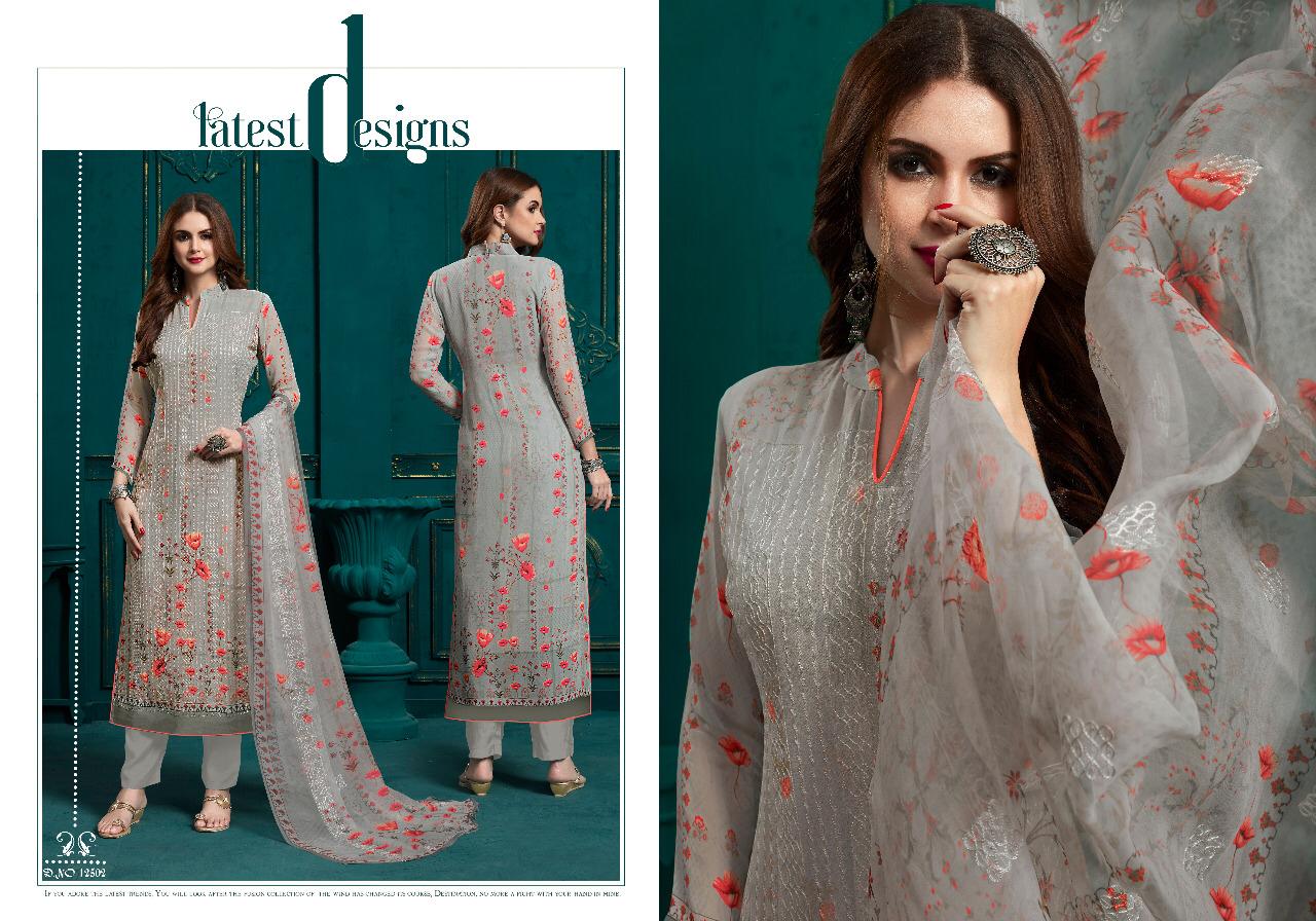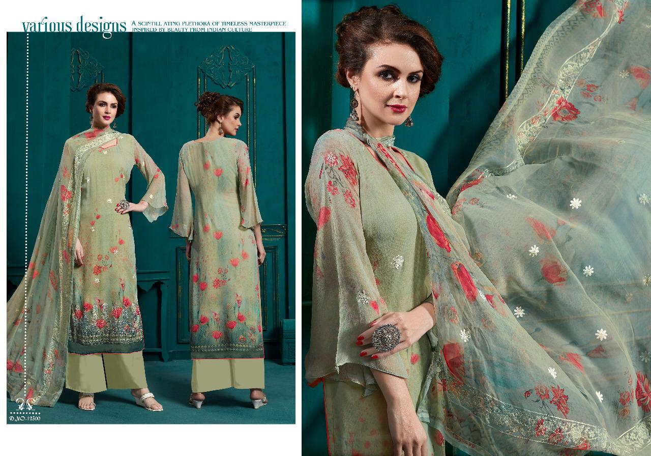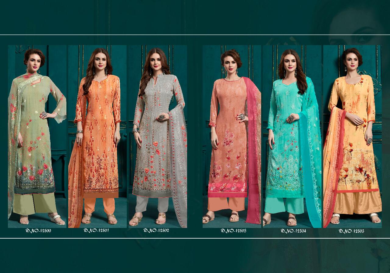 Catlog name - RUHAAB VOL -65. Top-Pure bemberg Georgette DIGITAL prt on Heavy EMBROIDERY Bottom-Pure Viscous shantoon Dupatta-Pure Bemberg FINE Georgette 30/30 DIGITAL Prt With HEAVY Embroidery. Rate- 1895 per Pcs . Set to set. GST 5 Percent Extra. Delivery from tomorrow |
