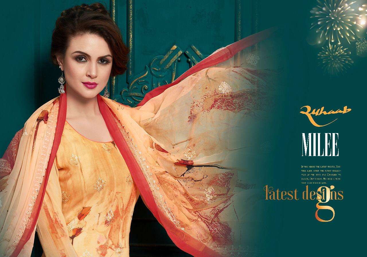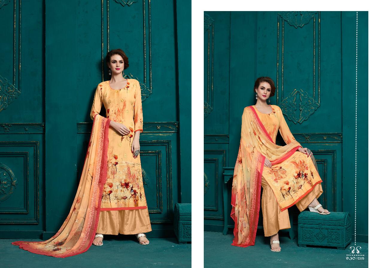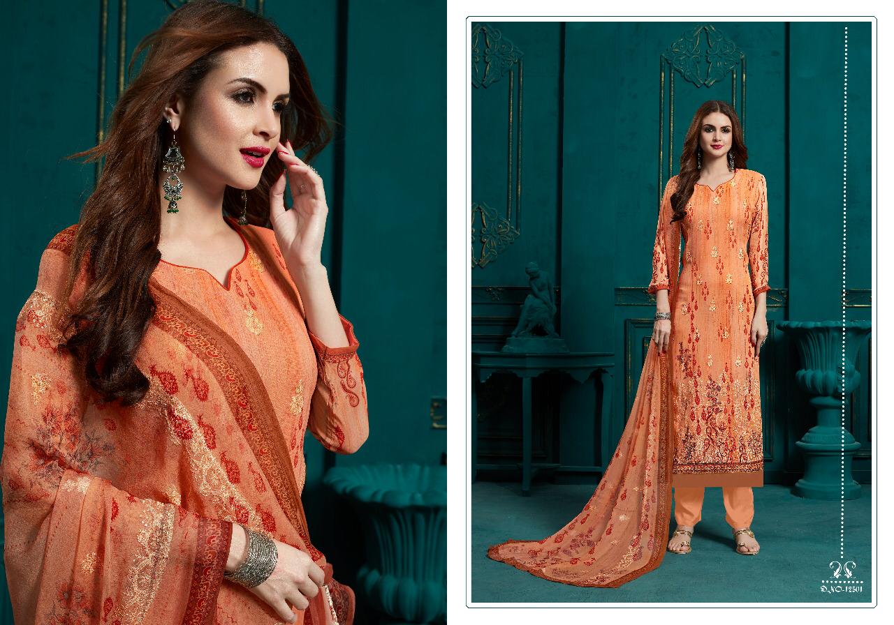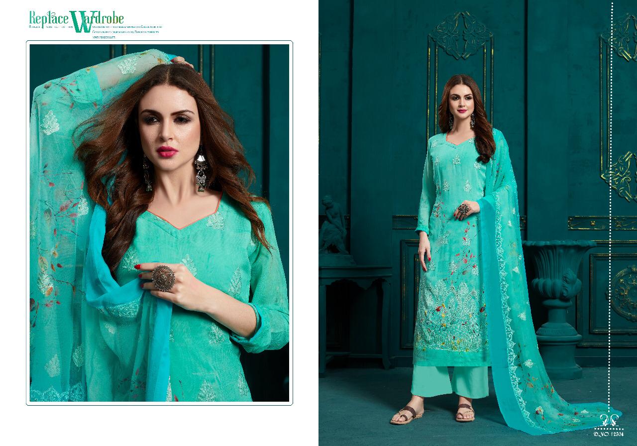 Catlog name - RUHAAB VOL -65. Top-Pure bemberg Georgette DIGITAL prt on Heavy EMBROIDERY Bottom-Pure Viscous shantoon Dupatta-Pure Bemberg FINE Georgette 30/30 DIGITAL Prt With HEAVY Embroidery. Rate- 1895 per Pcs . Set to set. GST 5 Percent Extra. Delivery from tomorrow |
