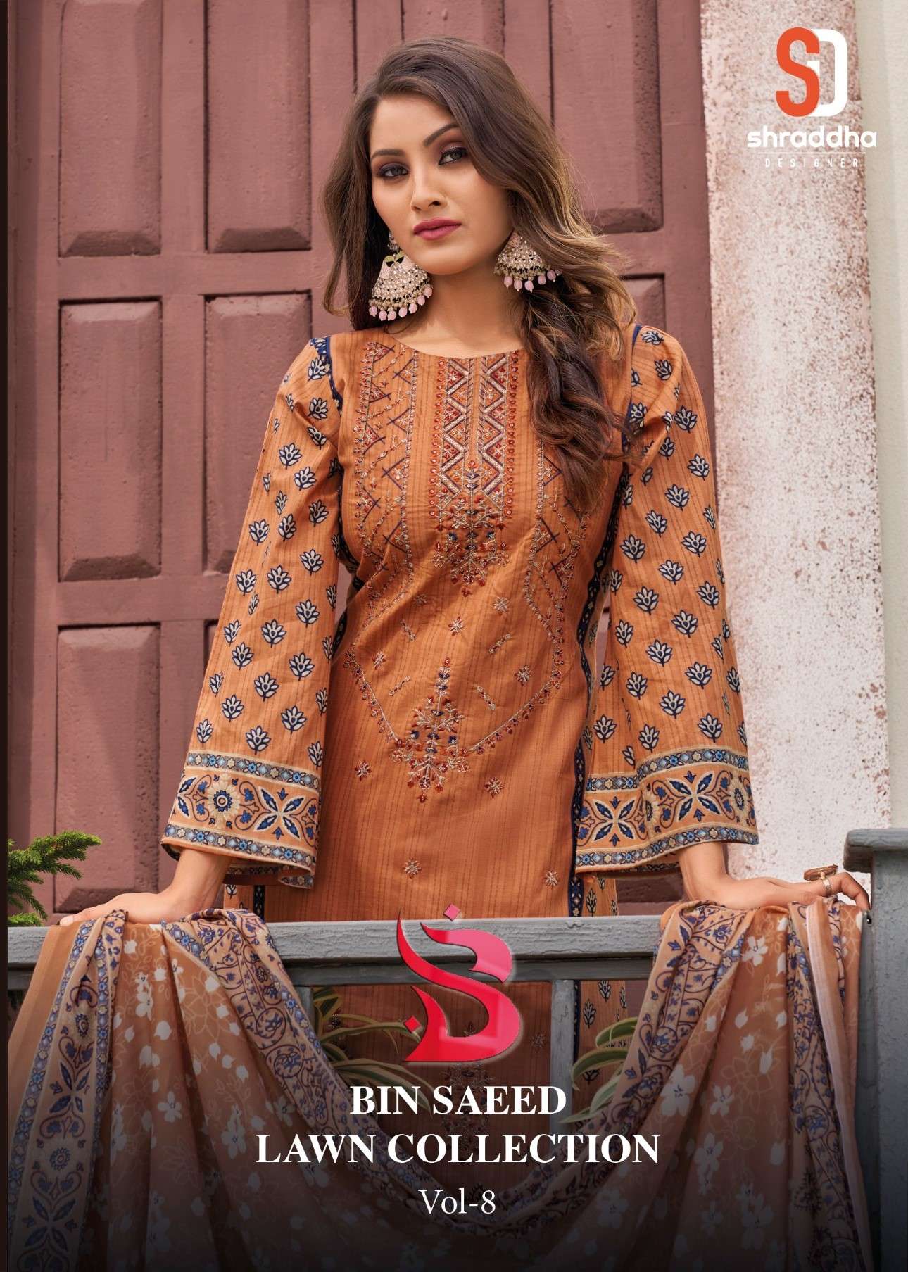 SHARADDHA DESIGNER is happy to announce the launch of NEW LAWN COLLECTION BIN SAEED VOL-8 SHARDDHA DESIGNER_ 🔹Top: Pure Cotton with SELF EMBROIDERY 🔹Bottom- Cotton Solid 🔹Dupp: Cotton Mal-Mal Pcs-6 Regarding |