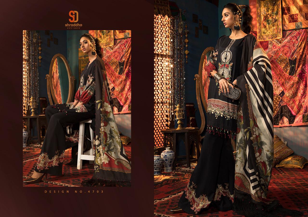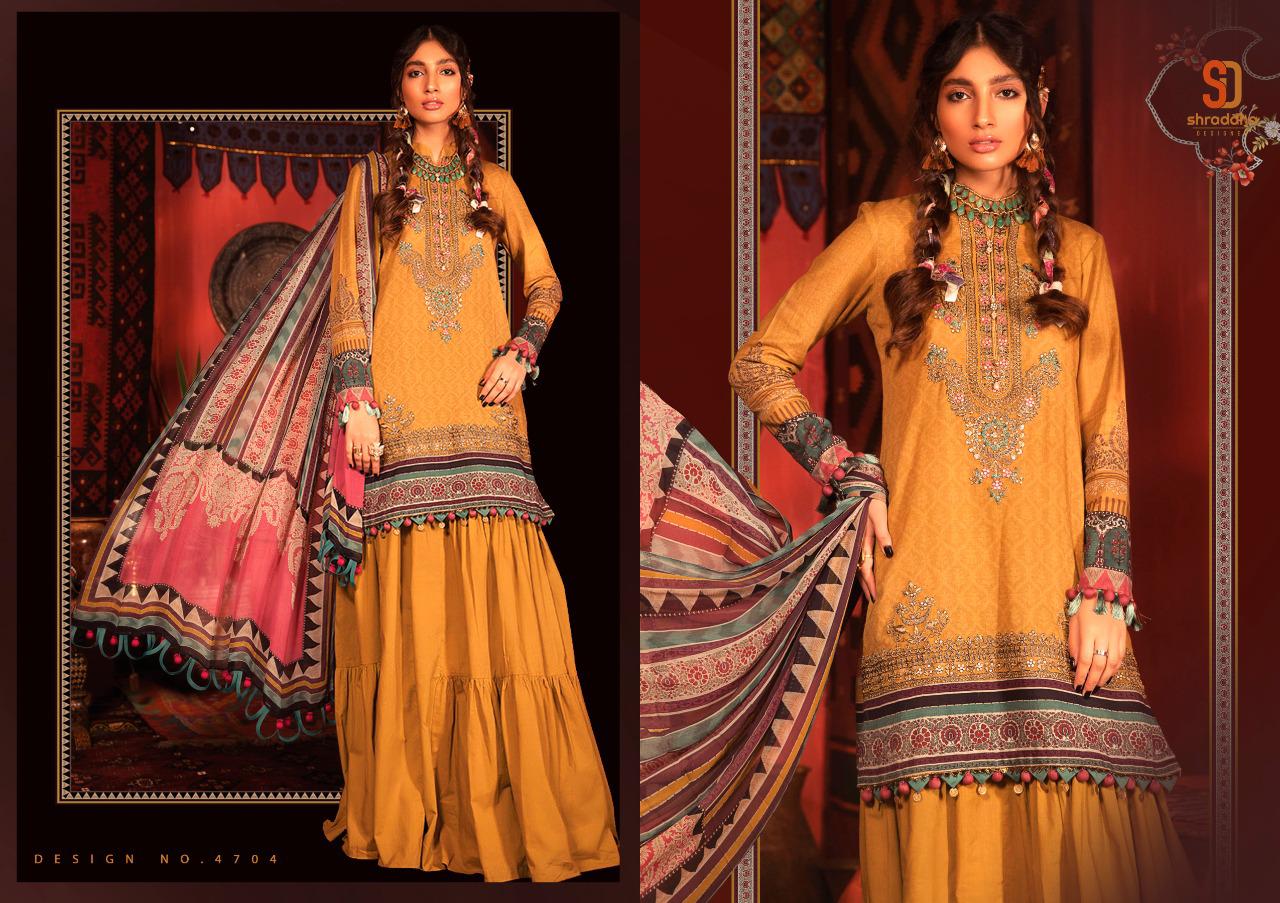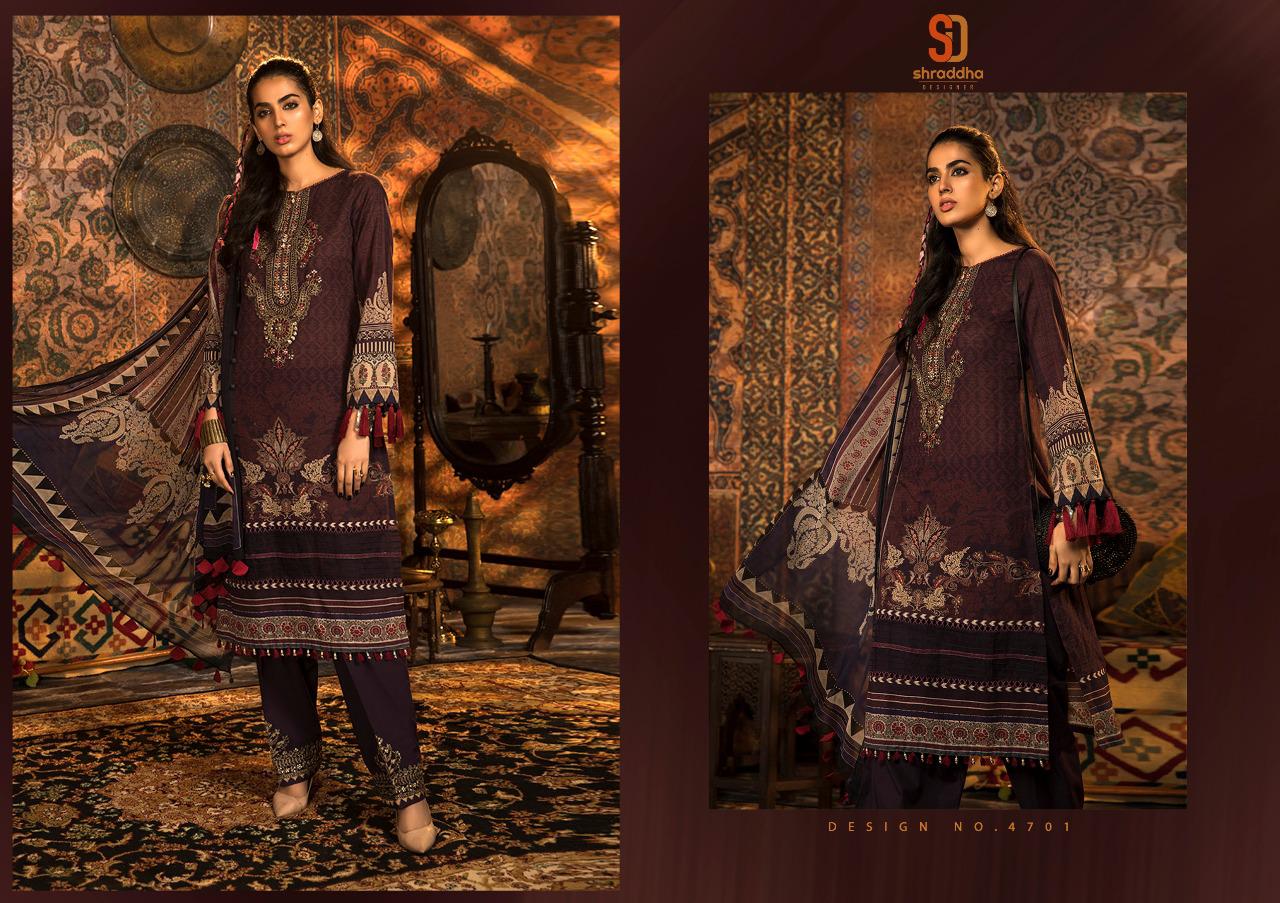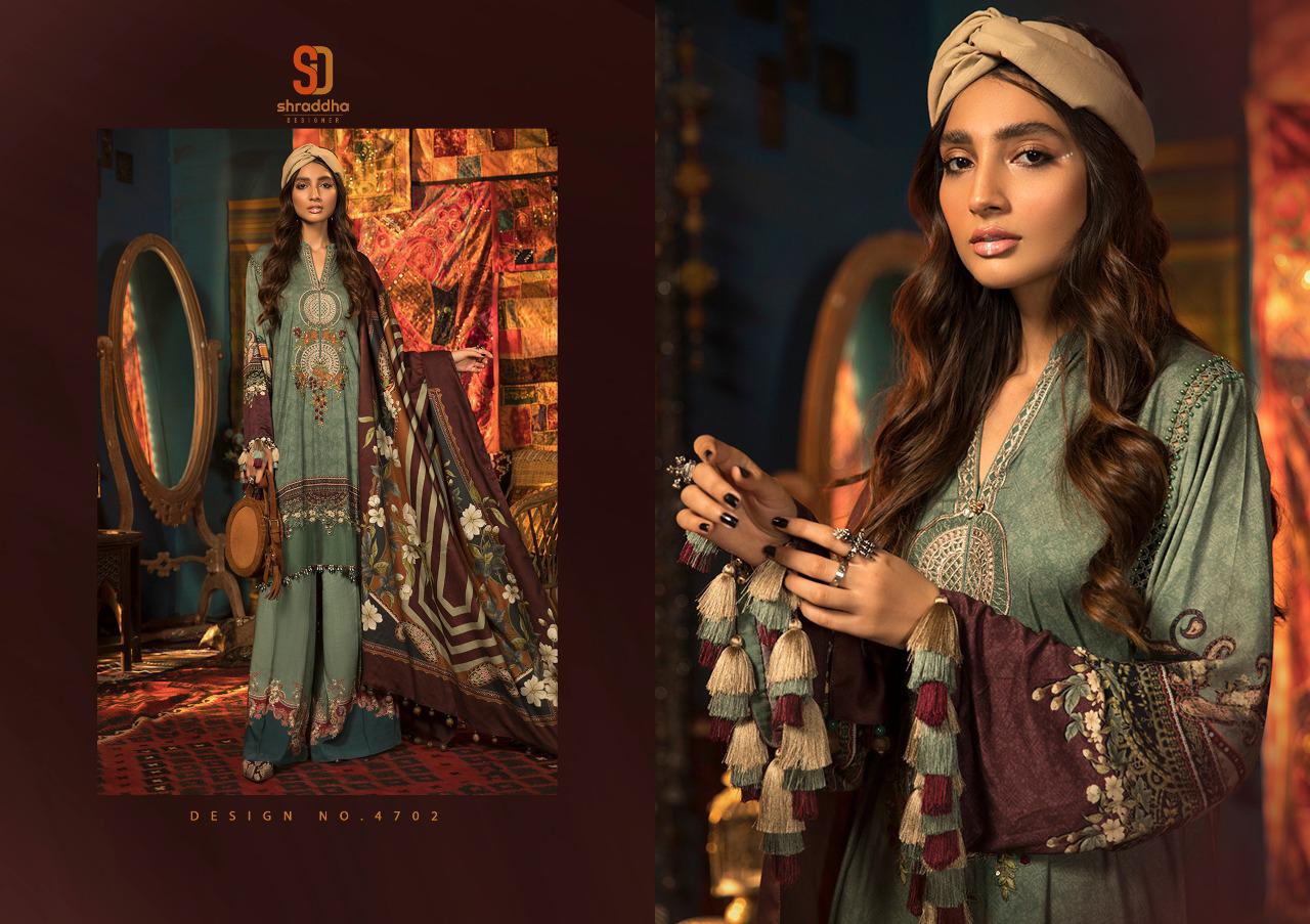 Shraddha Designer Presents Latest Collection Launched on 01-12-2020. Presenting Beautiful collection of 4 PCS with Unstitched .