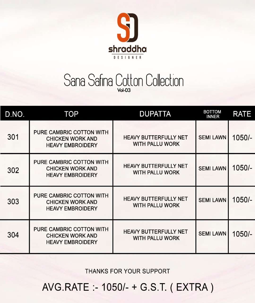 shraddha designer sana safina cotton collection vol 3 ladies pakistani suits