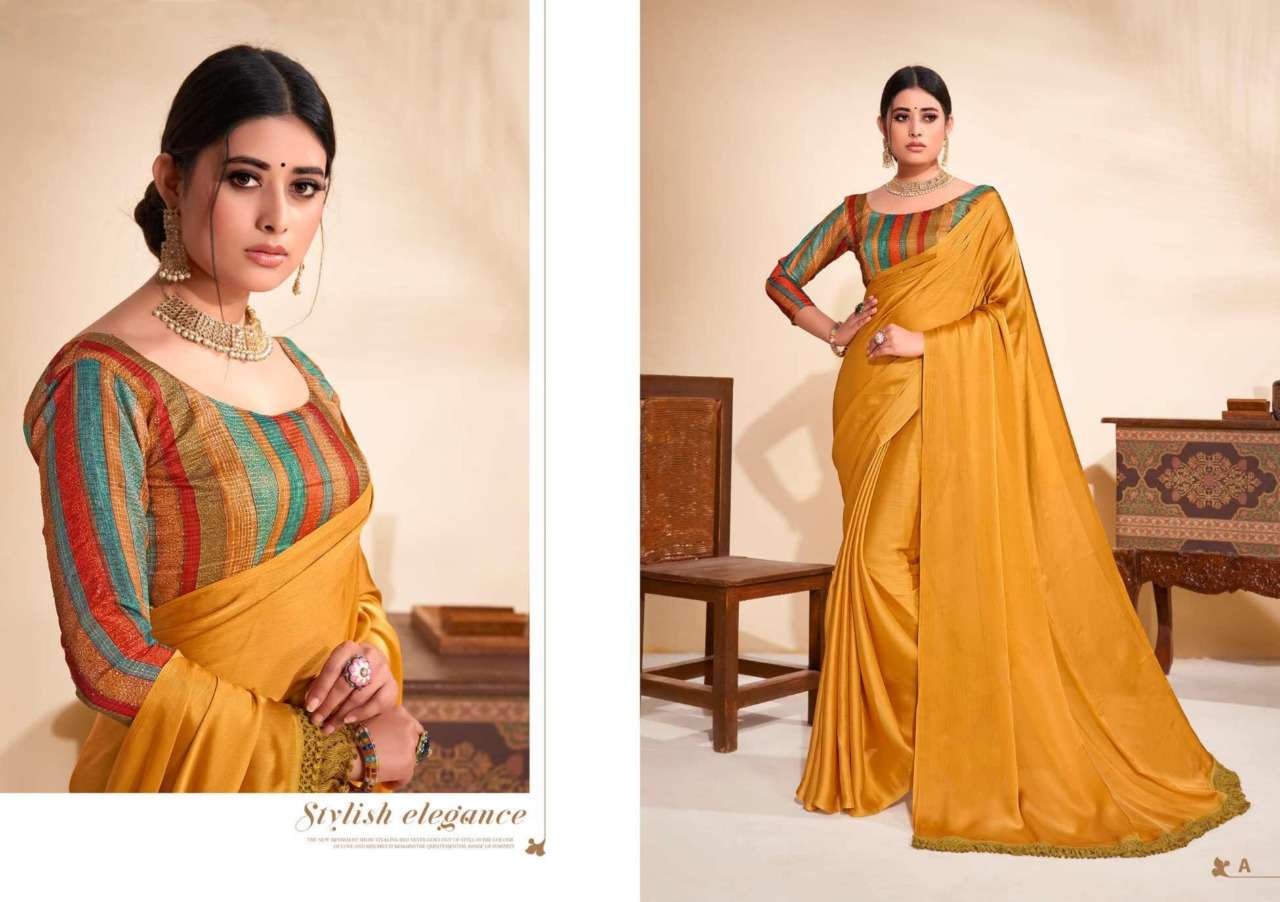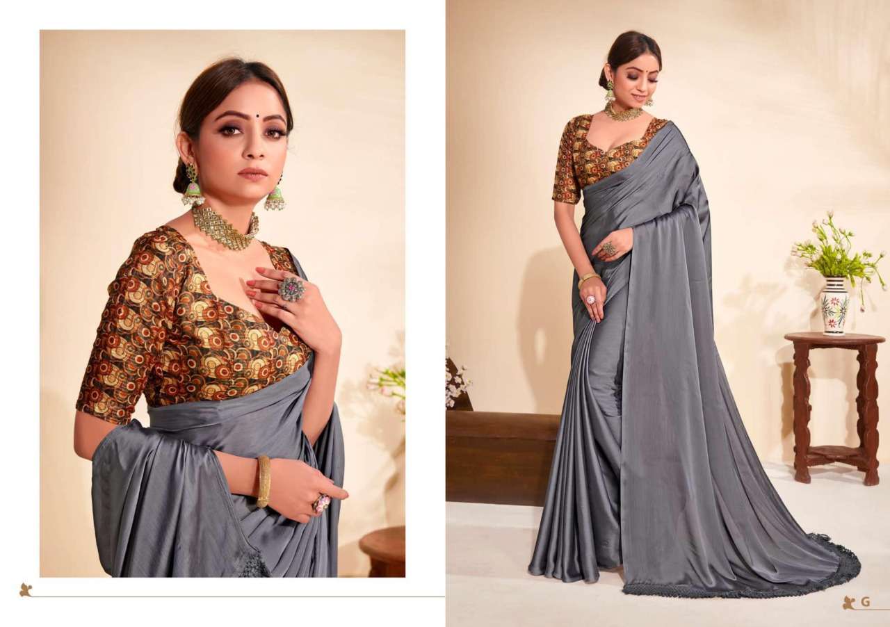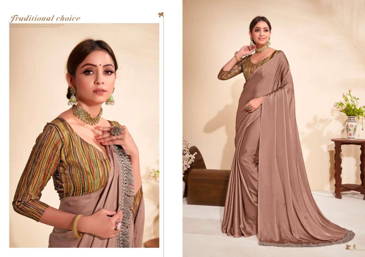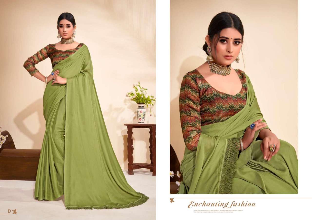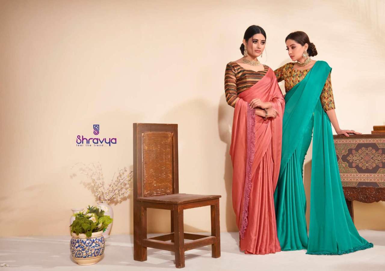 KANCHAN Item name : KANCHAN Brand name : Shravya Fashion Designs : 8 colour       Fabric : SARTIN CHIFFON WITH FANCY DIGITAL DIAMOND WORK BLOUSE  ALONGWITH FANCY TASSELS CUT : 6.30 Packing : Set to set only Rate : 485/- |