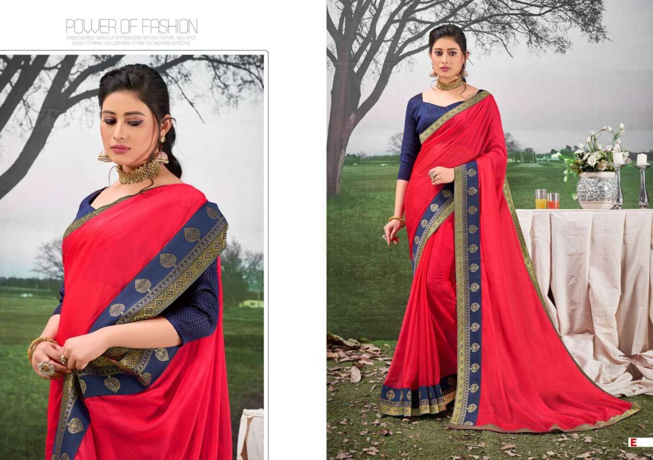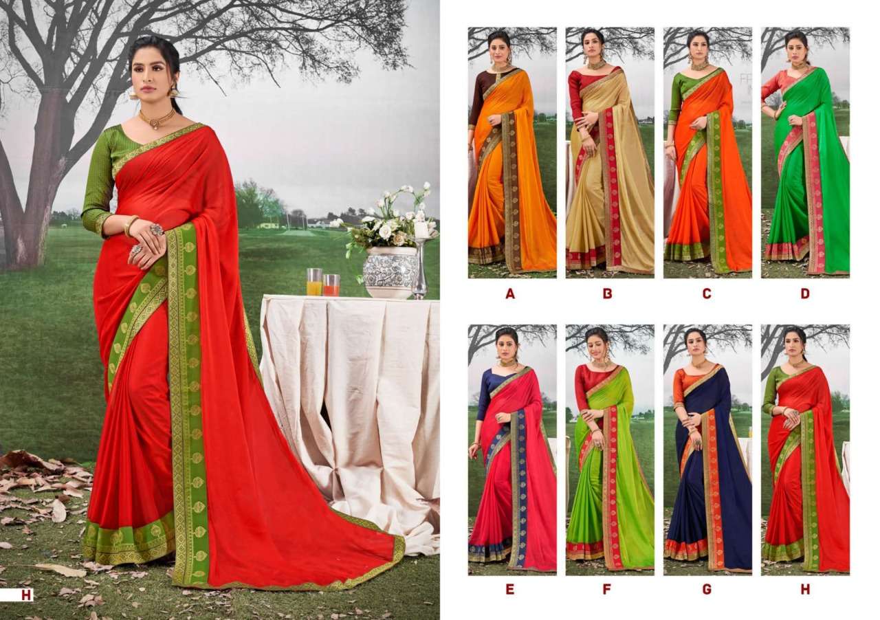 NAYANTARA Item name : NAYANTARA Brand name : Shravya Fashion Designs : 8 colour       Fabric : TWO TONE CHIFFON SILK WITH HEAVY MEENA JACQUARD BORDER AND BLOUSE CUT : 6.30 Rate : 430/- Set to set only |