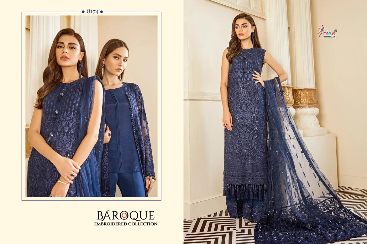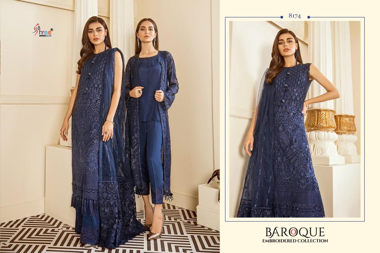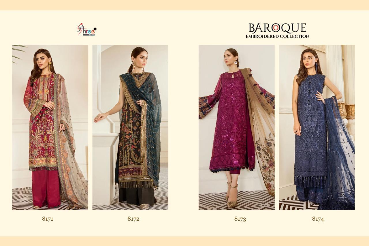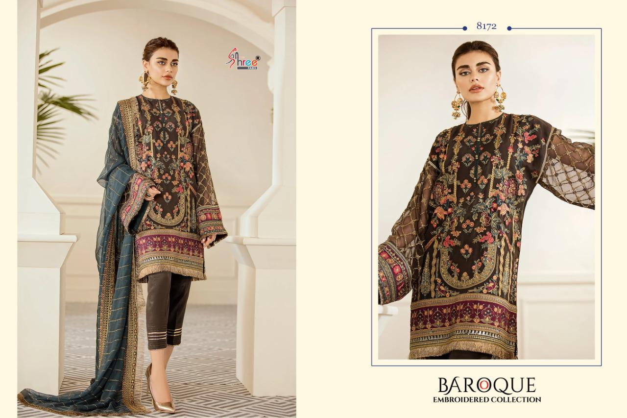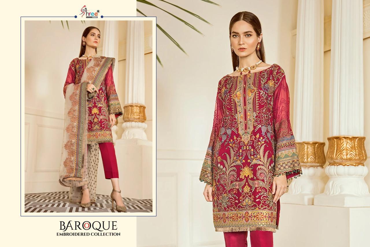 BAROQUE EMBRODERD COLLECTION TOP HEAVY JORGET WITH EMBRODERY BOTTOM INNER SANTOON DUPPTA NET & NAJMIN EMBRODERD DES 4 RATE 1299 SHREE FABS SURAT |