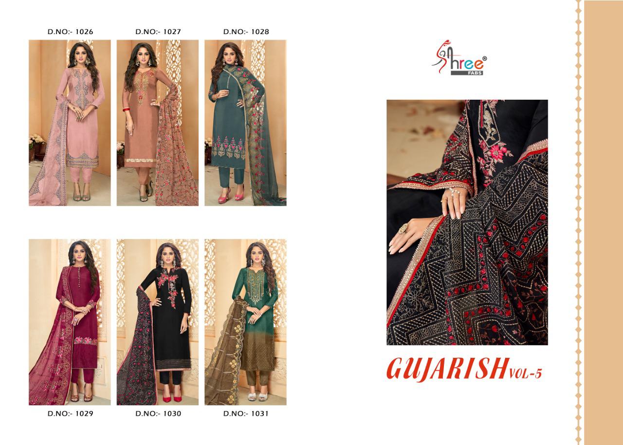 GUJARISH VOL 5 Top pure viscos opada with embrodery Bottom heavy santoon Duppta net Chenon orgnaja embroderd Des 6 Rate 1499+gst Shree fabs surat |