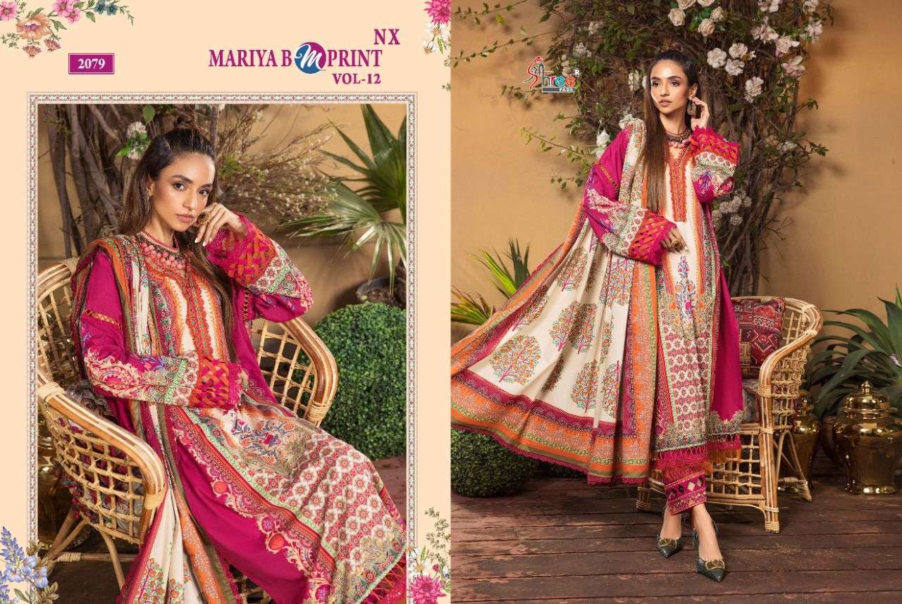 MARIAB M PRINT VOL-12 NX TOP PURE COTTON PRINT WITH EXCLUSIVE EMBROIDERY BOTTOM SEMILAWN DUPPTA SIFFON / COTTON RATE 741 SIFFON DES 5 Shree fabs surat |
