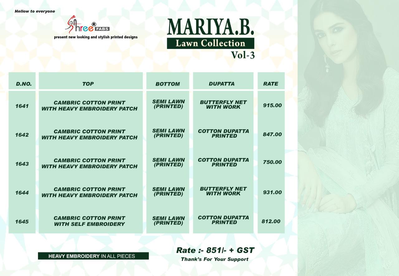 Shree Fab Mariya B Lawn Collection Vol 3 Pure Cotton Salwar Suit Concept In Surat