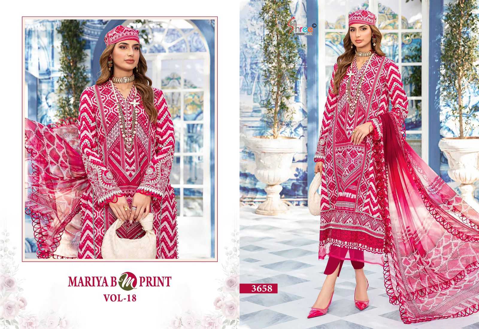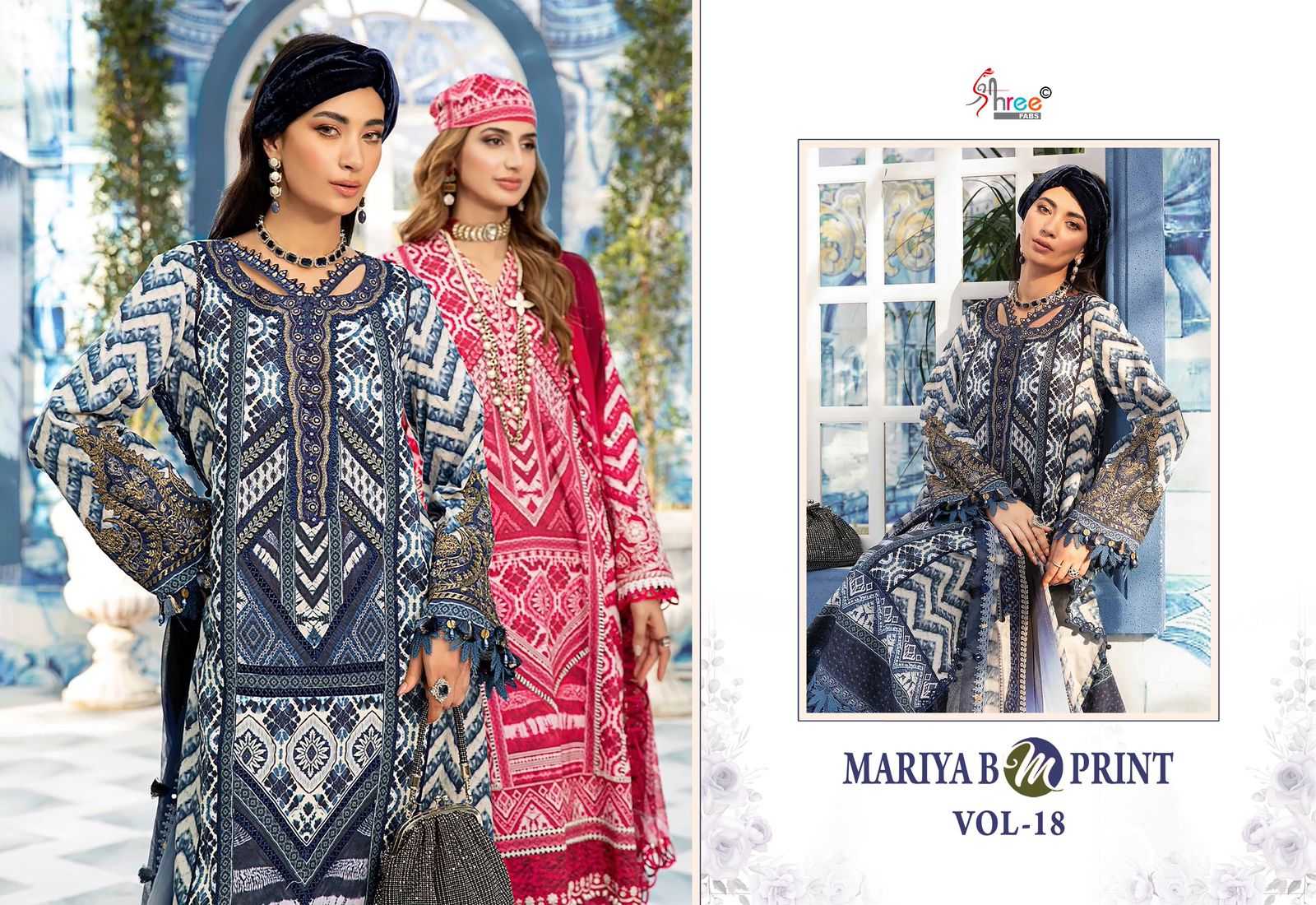 shree fab mariya b mprint vol 18 cotton pakistani suits collection