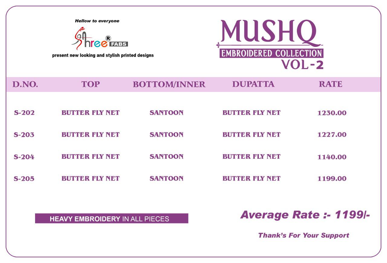 Shree Fab Mushq Vol 2 Butterfly Net 202-205 Series Party Wear Long Designer Embroidery Work Suits