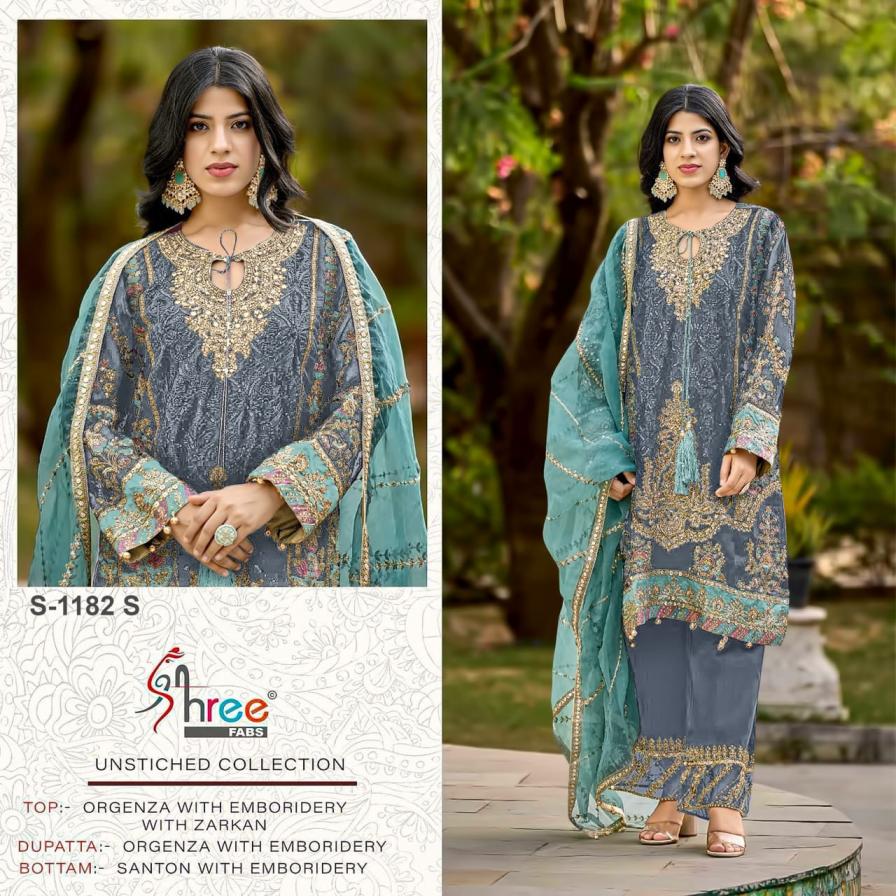shree fabs 1182 popular design organza pakistani unstitch suits