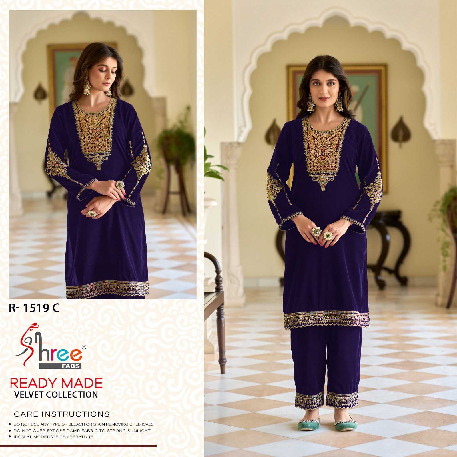 shree fabs 1519 winter wear velvet pakistani readymade kurti with pant
