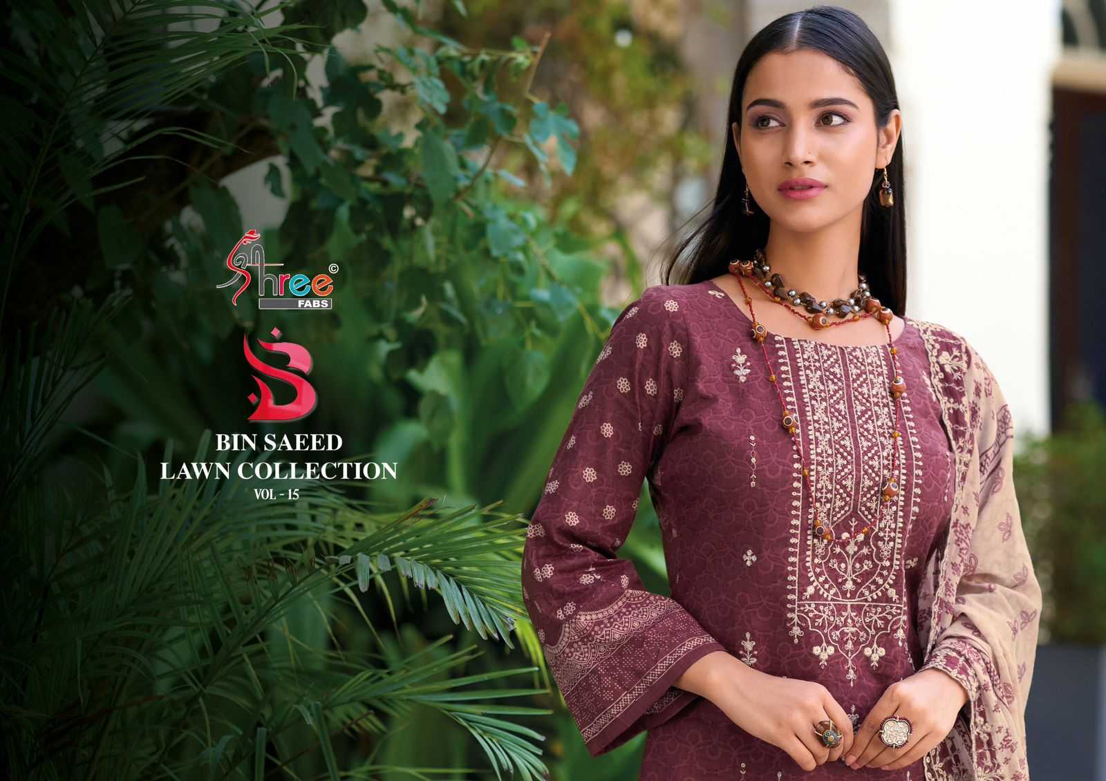 shree fabs bin saeed lawn collection vol 15 cotton print pakistani suits
