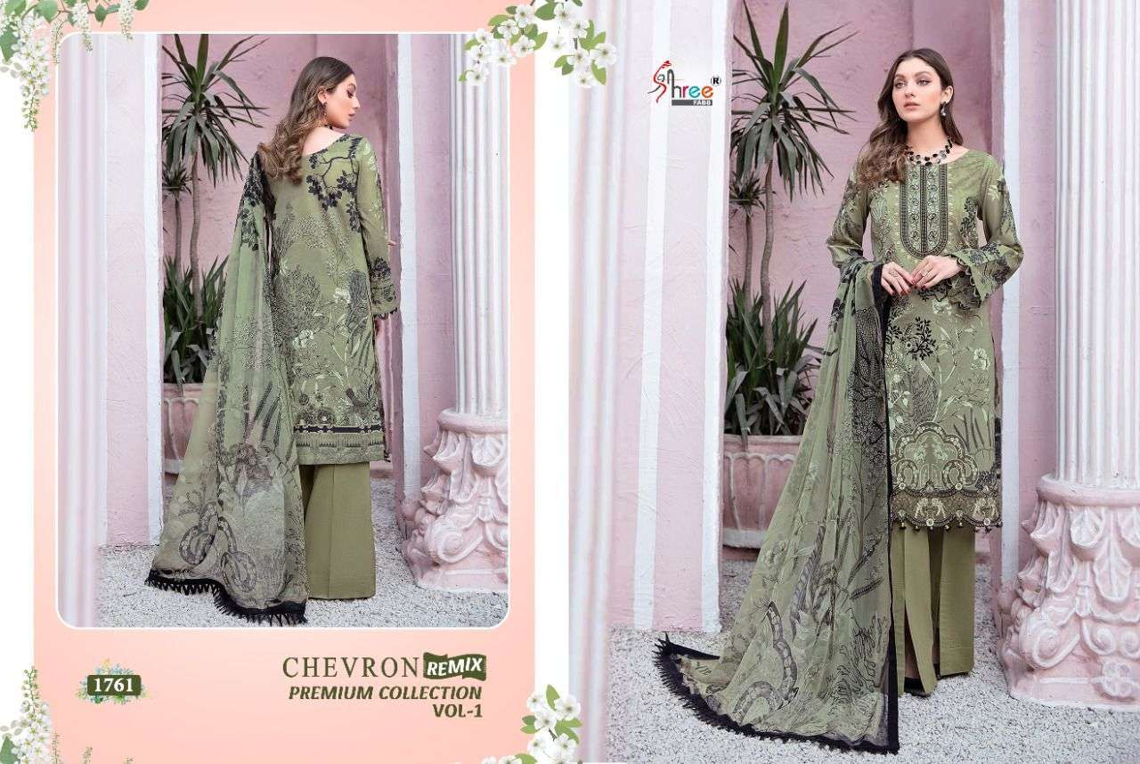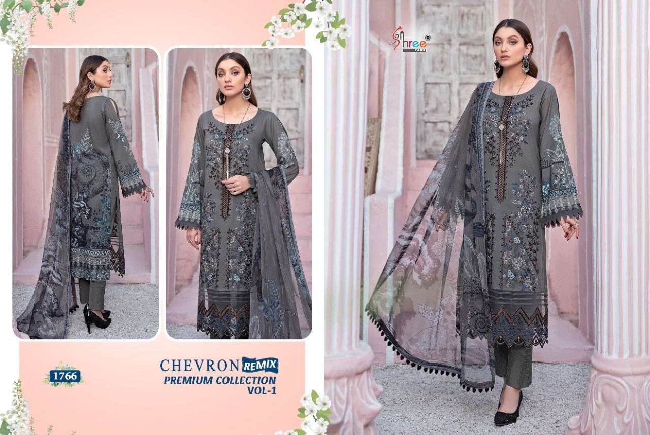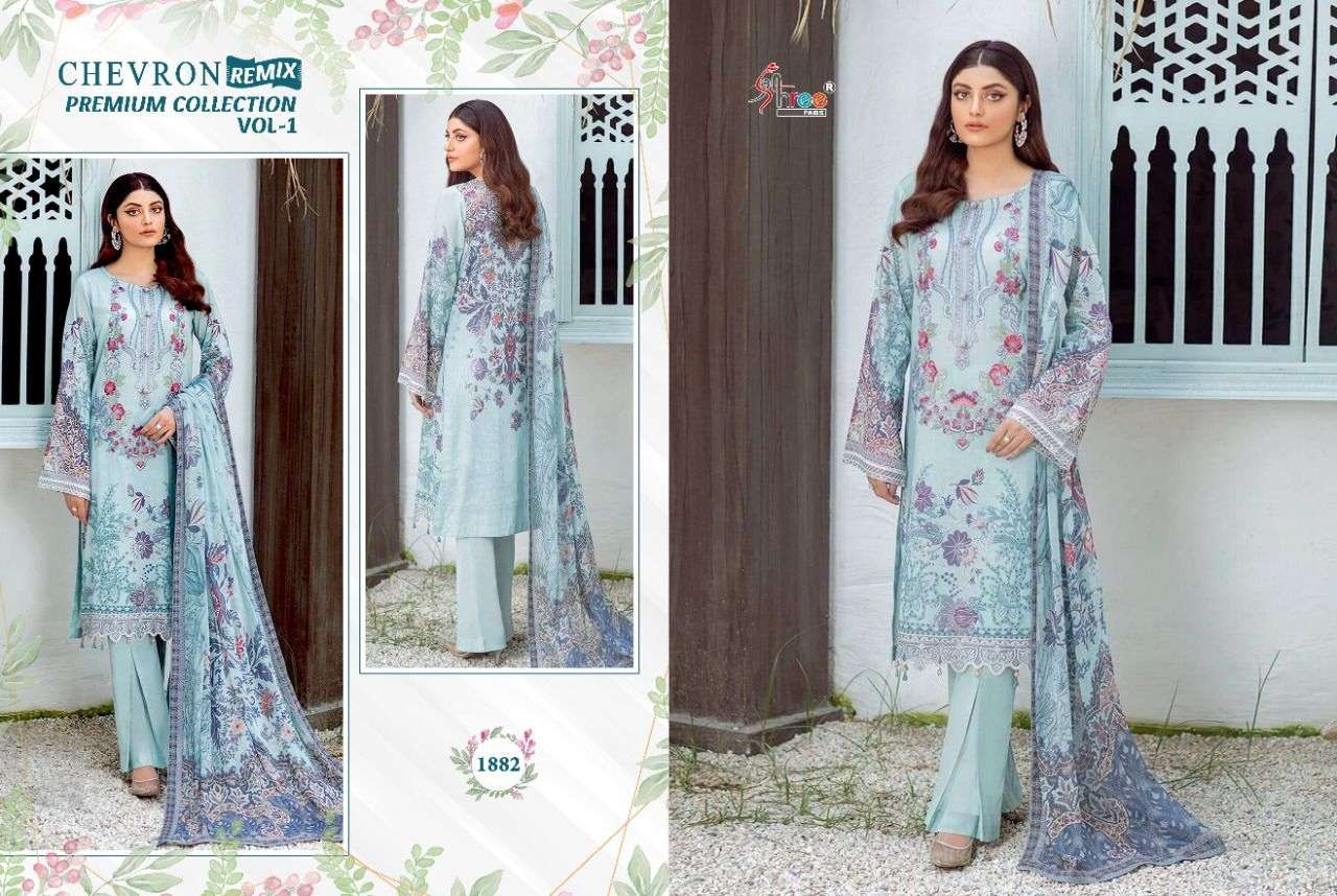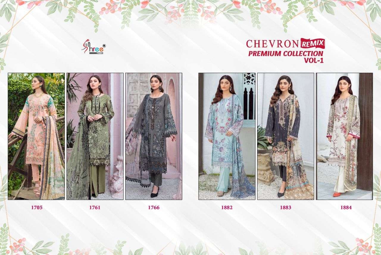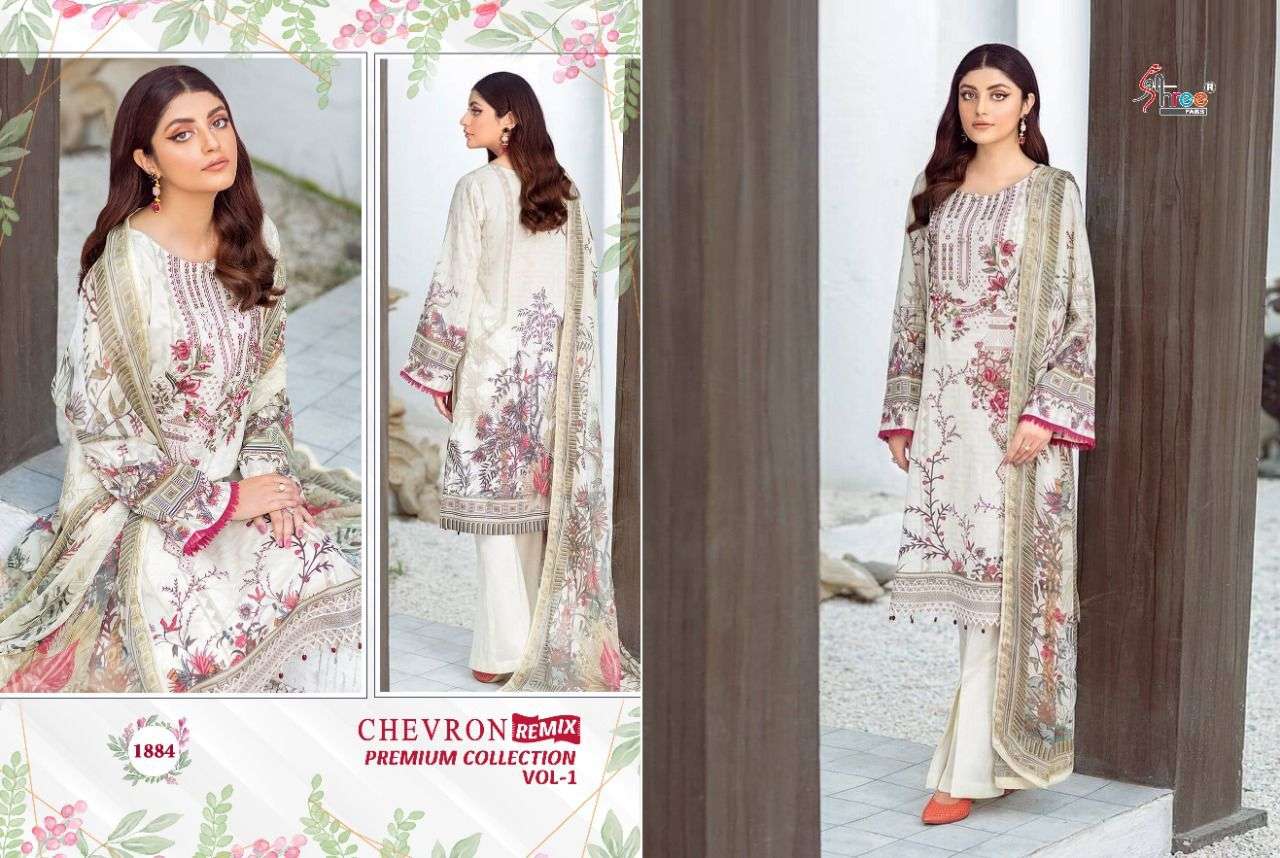CHEVRON REMIX PREMIUM COLLECTION-01 TOP PURE LAWN COTTON WITH HEAVY SELF EMBROIDERY BOTTOM SEMILAWN DUPPTA SIFFON / COTTON DESIGNS 6 RATE SIFFON 851+gst Shree fabs surat |