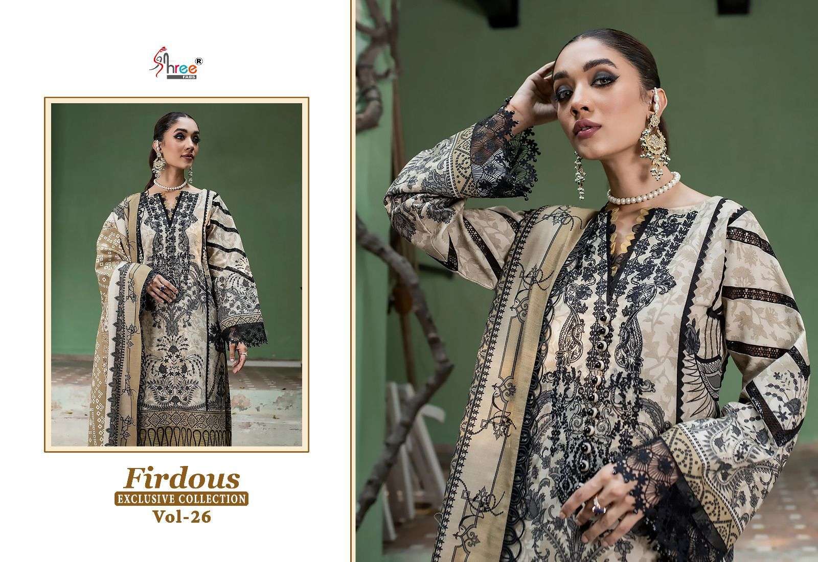 FIRDOUS EXCLUSIVE COLLECTION VOL-26 TOP PURE COTTON PRINT WITH EXCLUSIVE PATCHES WORK BOTTOM SEMILAWN DUPPTA SIFFON/ COTTON DESIGNS 8 RATE 680 SIFFON DUPPTA 730 COTTON DUPPTA SHREE FABS SURAT®️ |