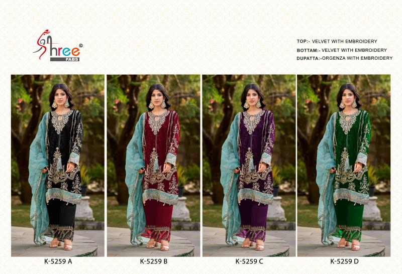 shree fabs k 5259 winter special velvet embroidery 3pcs suits
