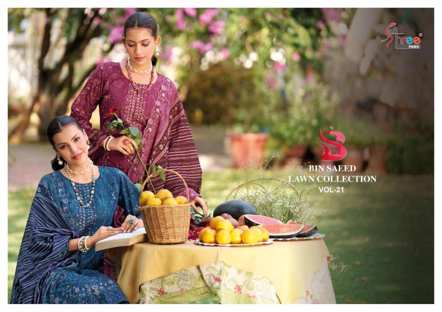shree fabs lauch bin saeed lawn collection vol 21 cotton fancy design unstitch suit