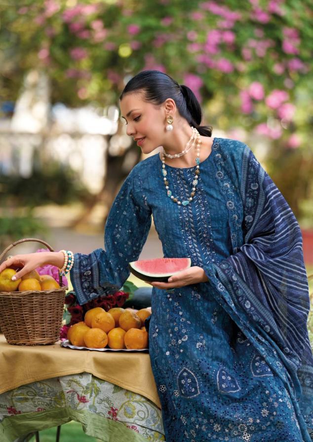 Bin saeed lawn collection vol 21 Top pure cotton print with exclusive self Embrodery aplic work Bottom semilawn Duppta pure mal cotton print with Embrodery border cutwork Rate 999 Shree fabs surat
