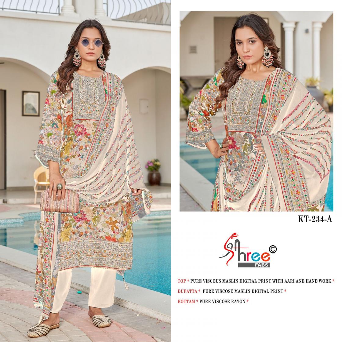 shree fabs launch kt 234 shop trendy viscose muslin pakistani suits