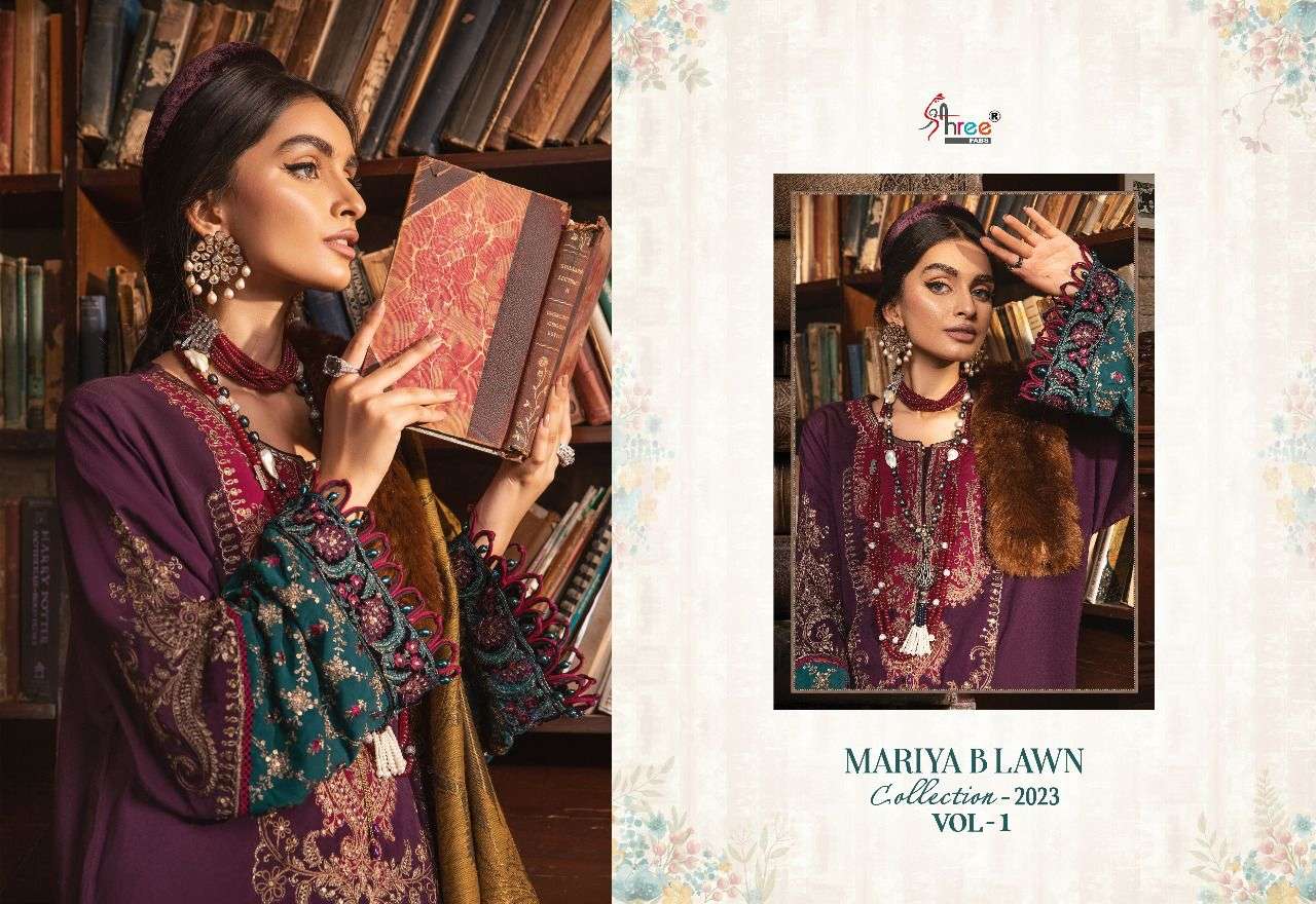 shree fabs maria b lawn 2023 vol 1 cotton pakistani fancy suits