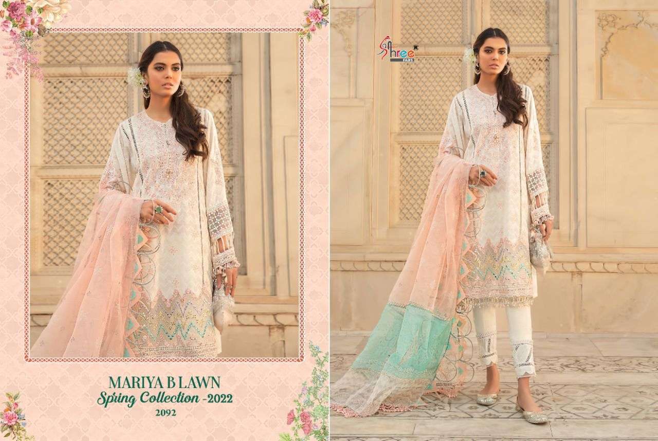 shree fabs maria b lawn spring 2022 cotton work pakistani fancy suits