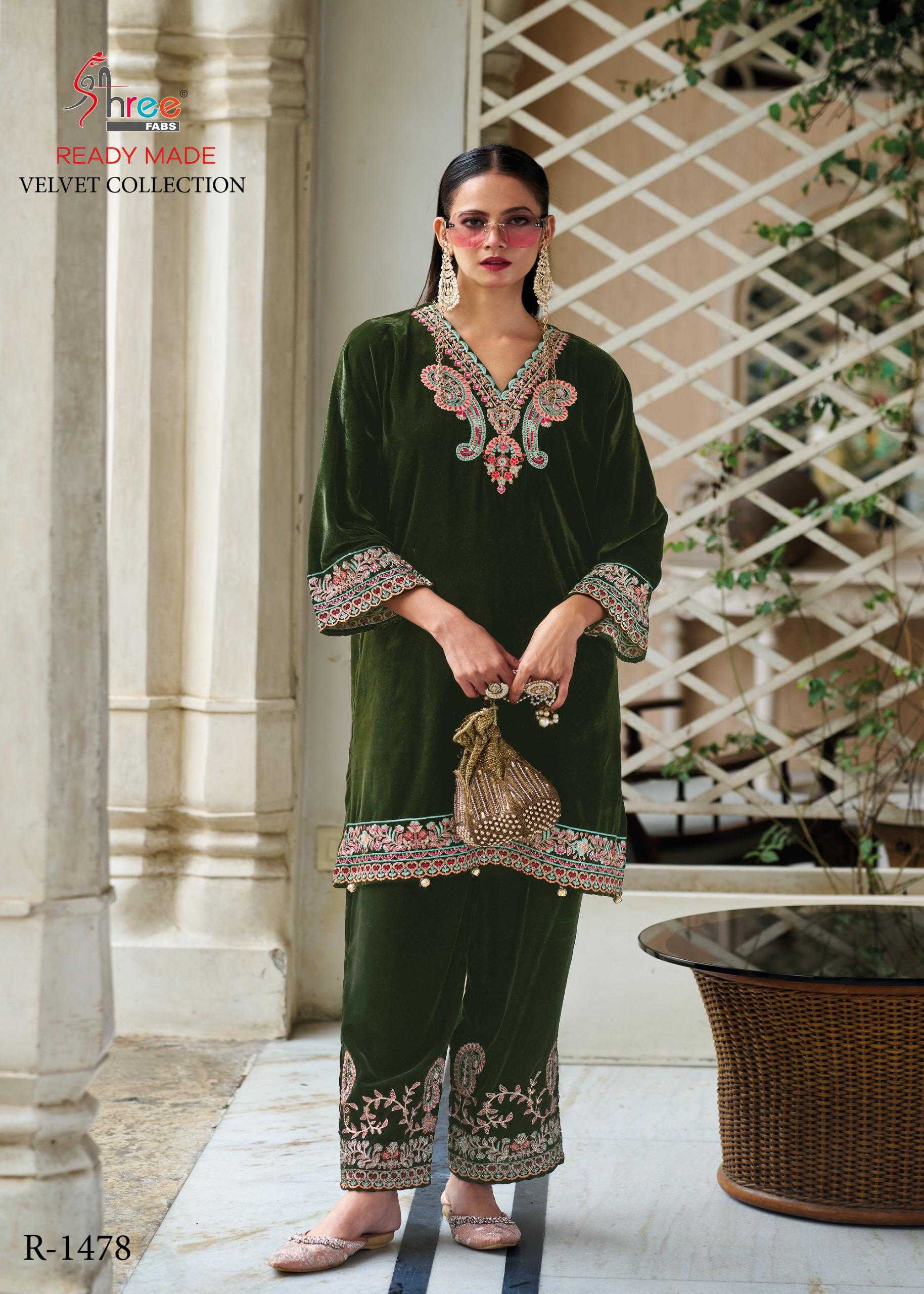 R 1478 desin nomber velvet code set shree fabs