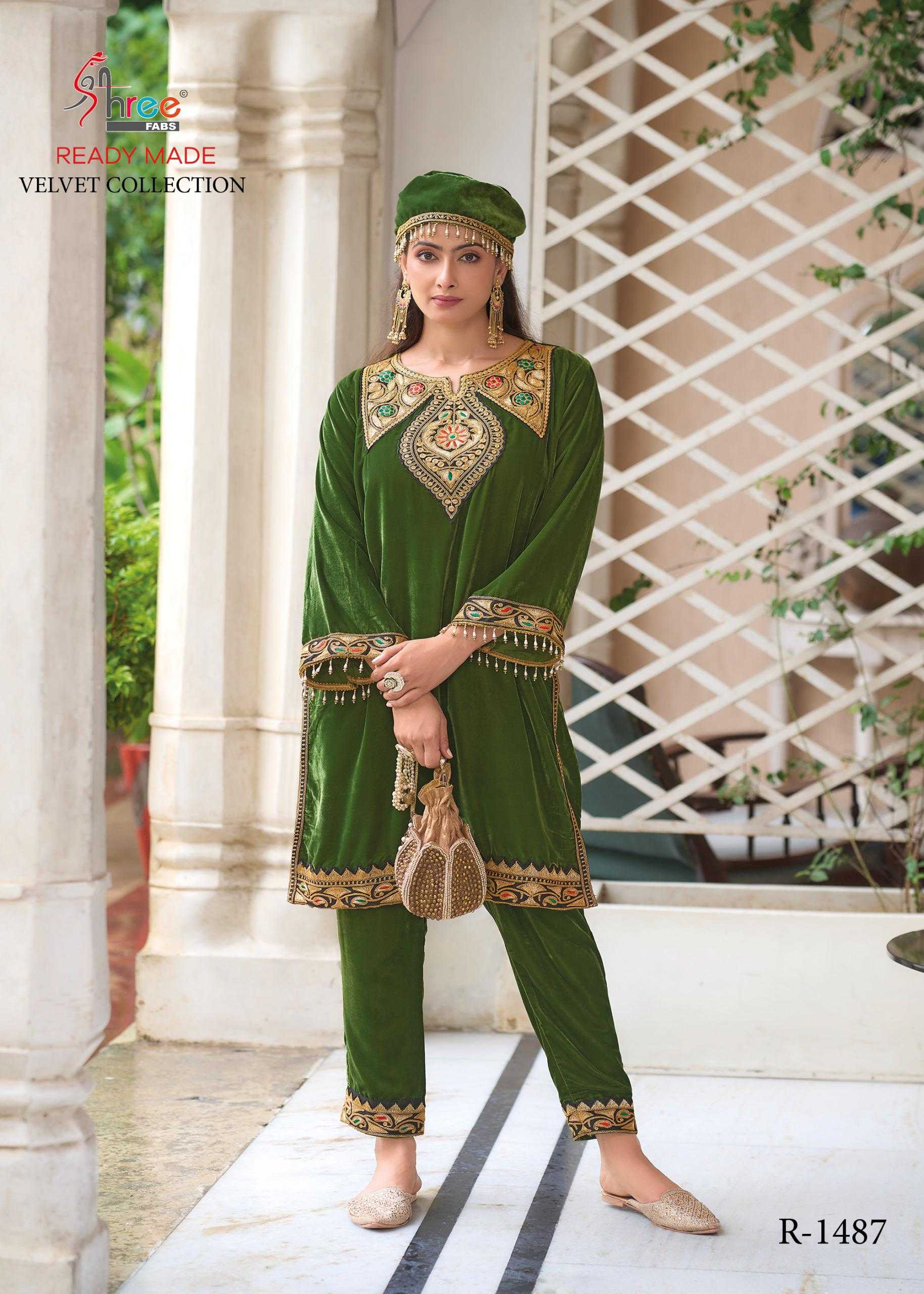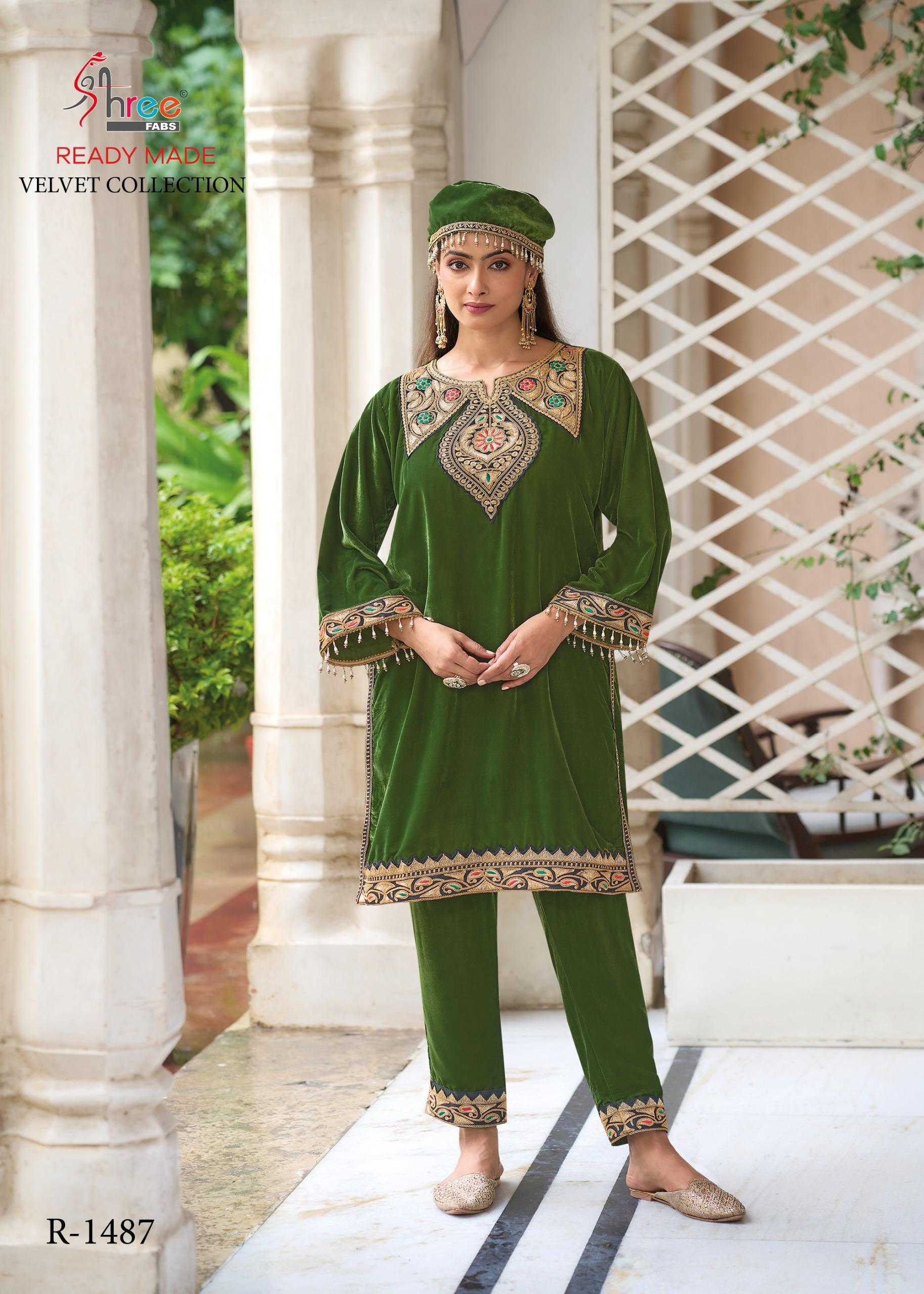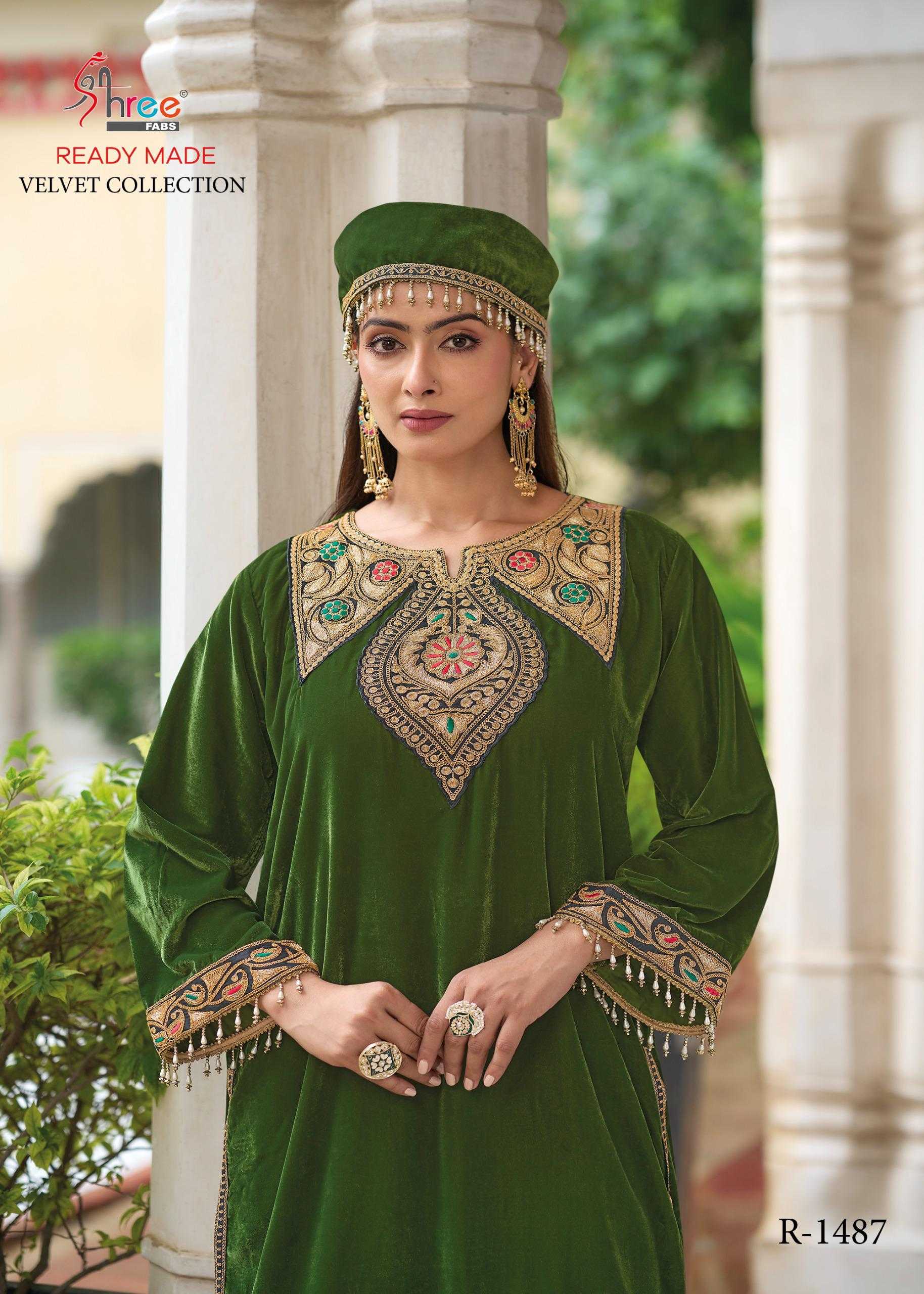 Shree Fabs R 1487 design number velvet code set shree fabs orignal kashmiri tilla top--11000 velvet bottam - 11000