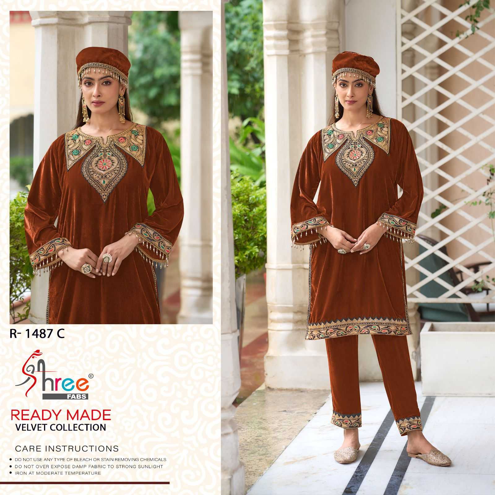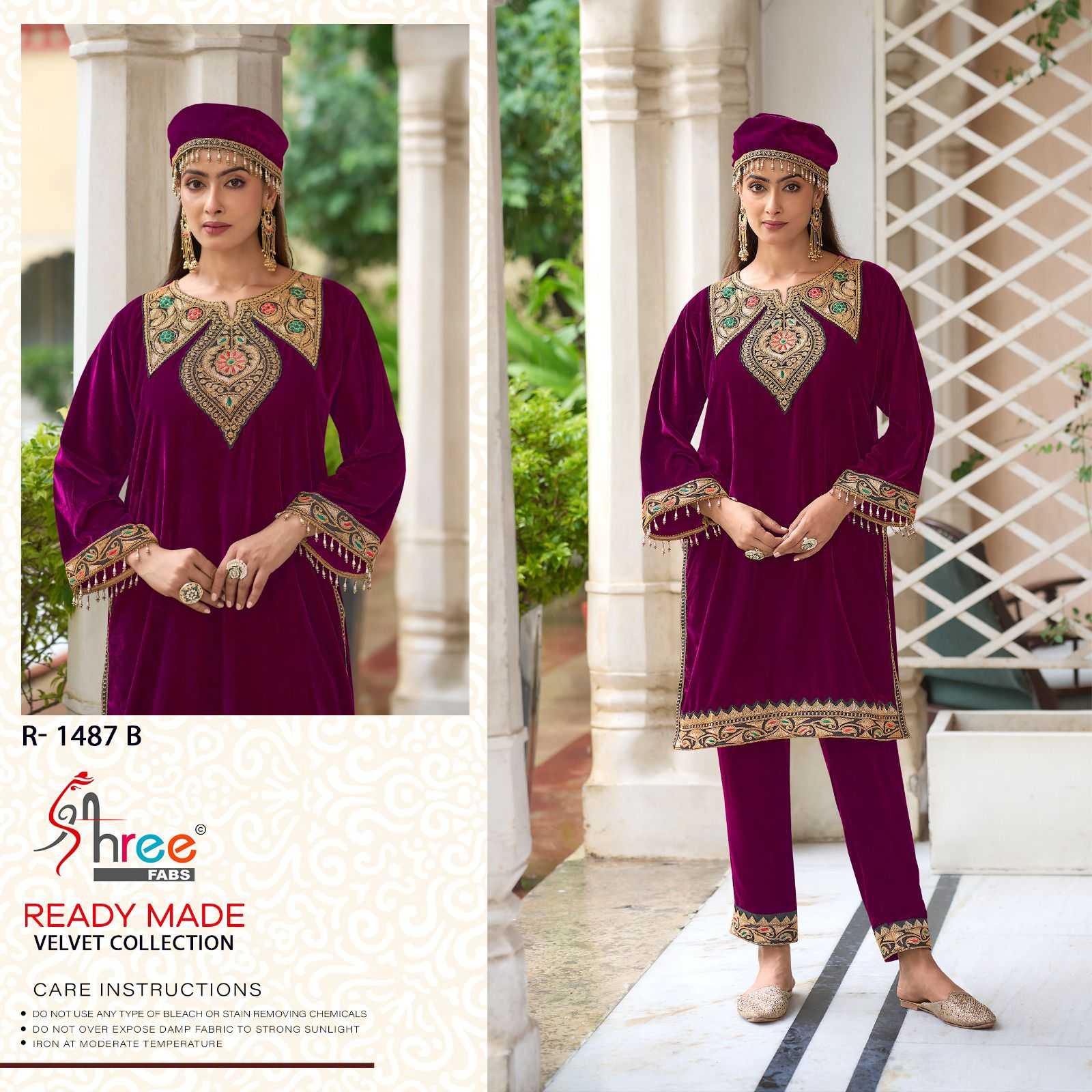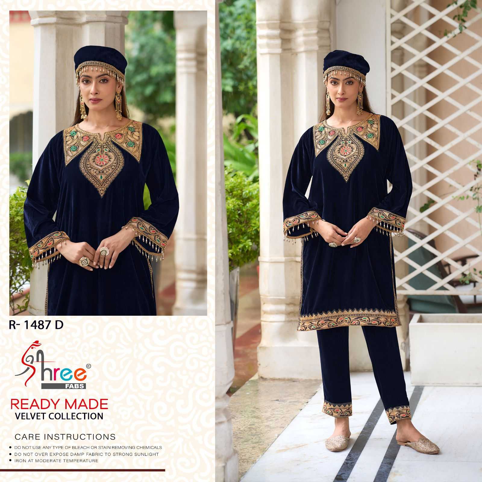 Shree Fabs R 1487 design number velvet code set shree fabs orignal kashmiri tilla top--11000 velvet bottam - 11000