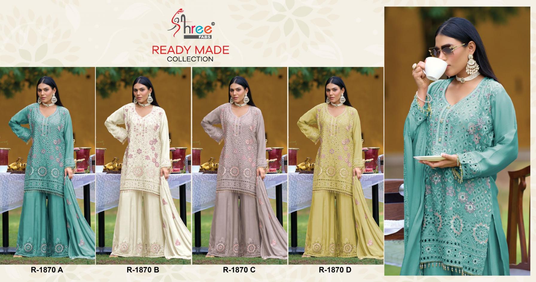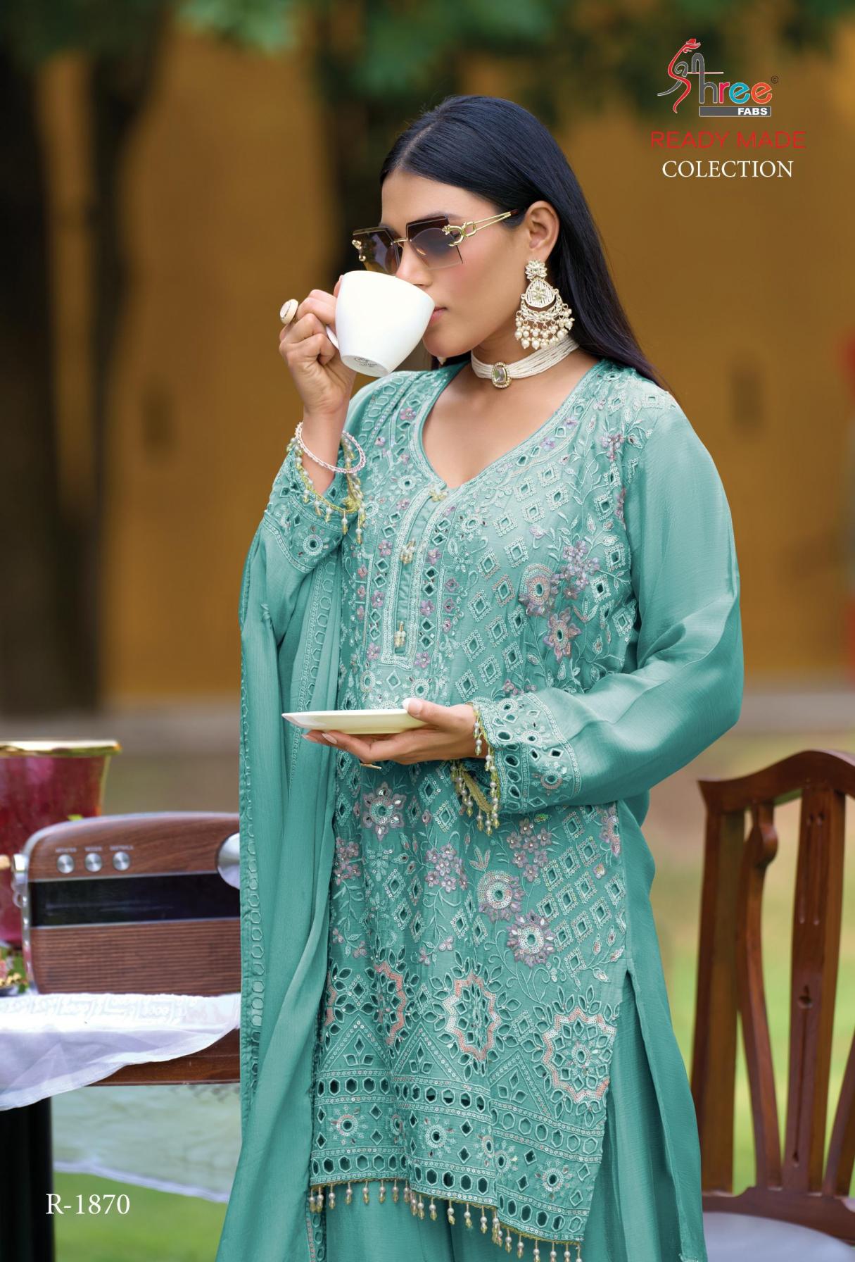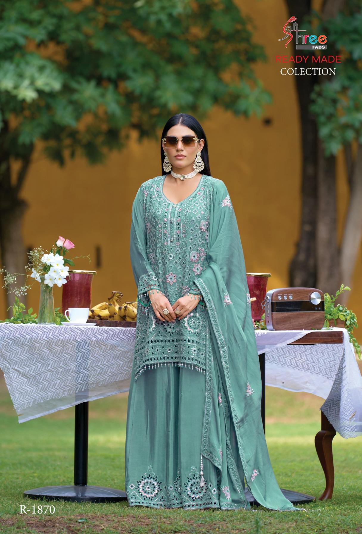 shree fabs r 1870 chinon readymade pakistani plazzo style 3pcs dress