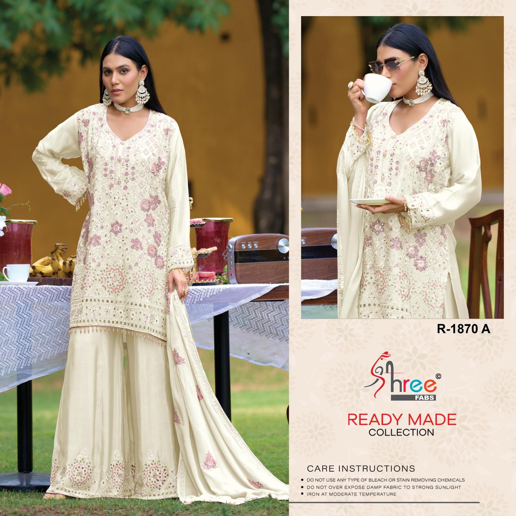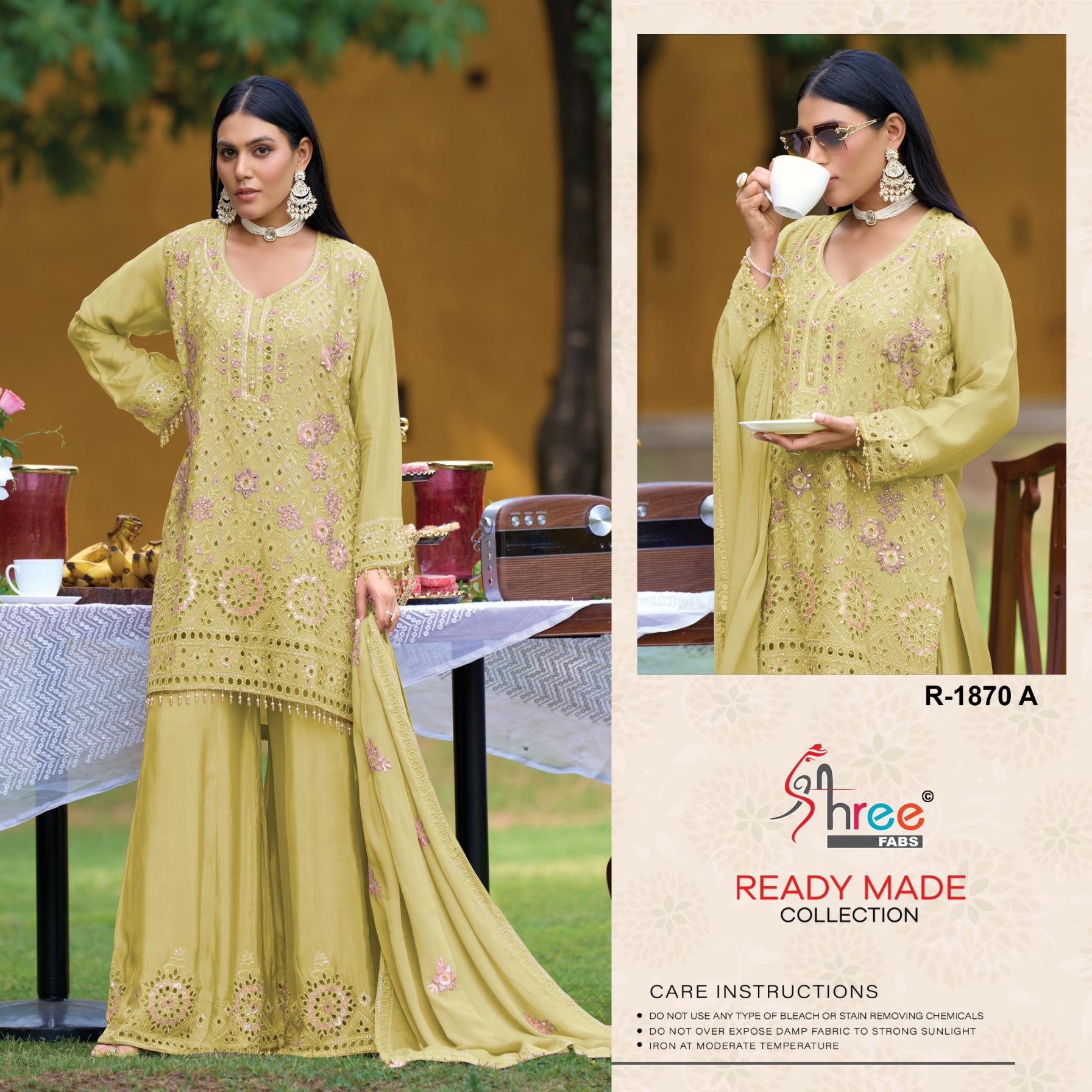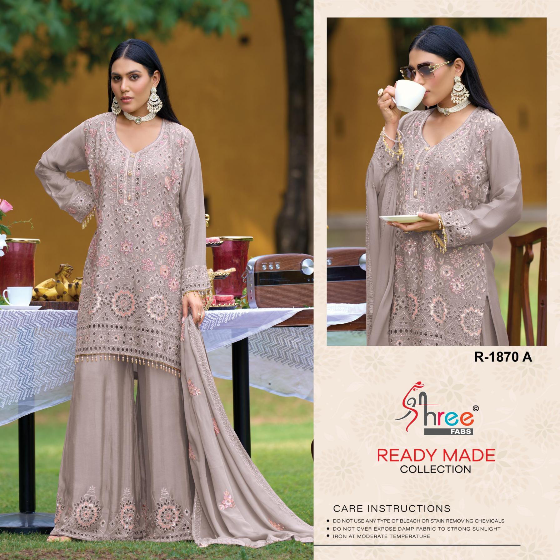 shree fabs r 1870 chinon readymade pakistani plazzo style 3pcs dress