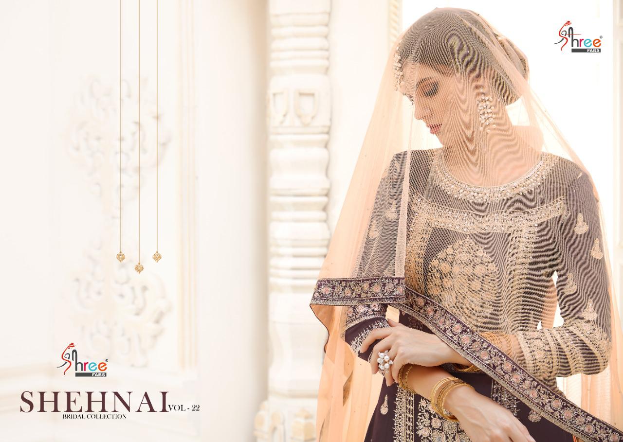 Shehnai bridal collection vol 22 Top heavy jorget with embrodery & handwork Bottom stich sarara with santoon inner Duppta embroderd net with four side less Des 4 Rate 1899+ gst Shree fabs surat |