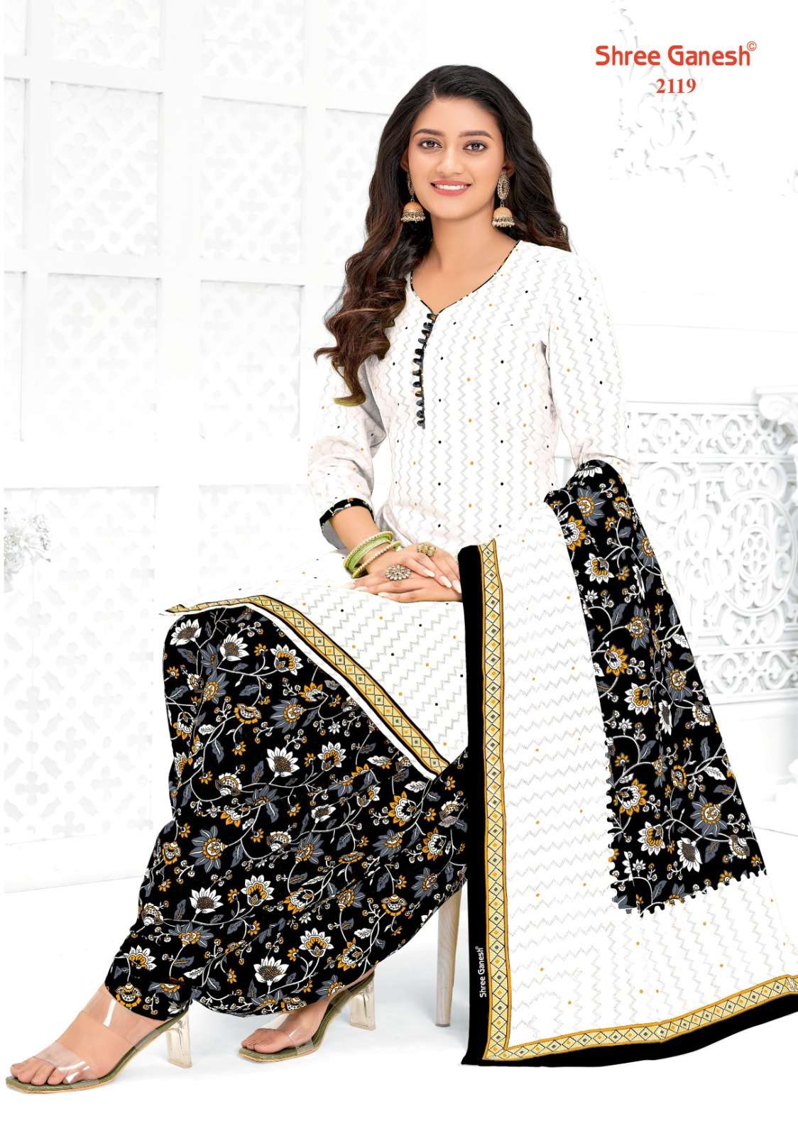 shree ganesh white and black fancy casual cotton ladies suits wholesaler