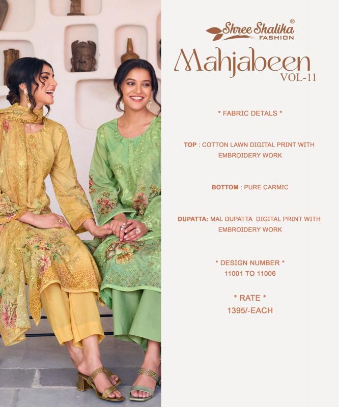 shree shalika presents mahjabeen vol 11 cotton lawn fashionable dress material