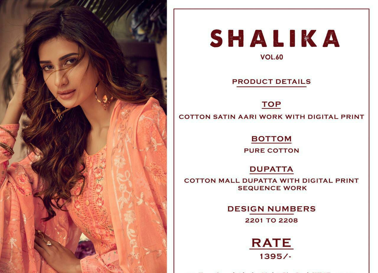 Shree Shalika Vol 60 Cotton Satin Aari Work 2201 Series Salwar Suits