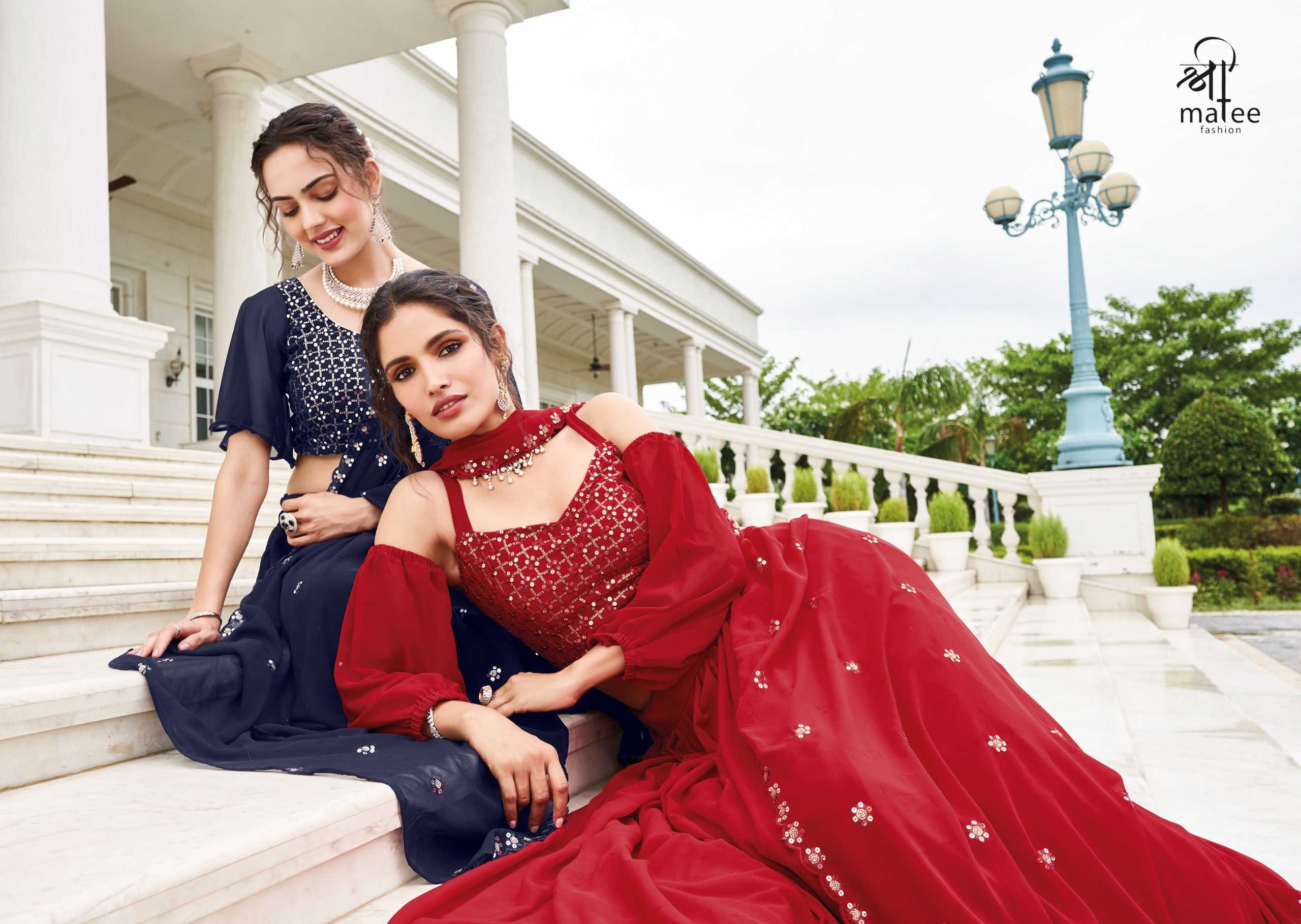 SHREEMATEE FASHION OFFICIAL SHREEMATEE FASHION PRESENT AMISHA CATALOGUE 🥳THE PREMIUM COLLECTION FOR WEDDING AND UPCOMING SEASON 🥳 👗FABRIC DETAILS👗 BLOUSE- Pure Fox Georgette With Embroidery Work. (free size stitch-42) 2 inches margin LEHENGA - Pure Fox Georgette.(Size-42) DUPTTA- Pure Fox Georgette With Embroidery Work. |