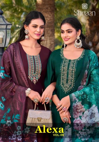 shreen hinaya lalexa vol 6 readymade roman silk elegance style 3pcs dress