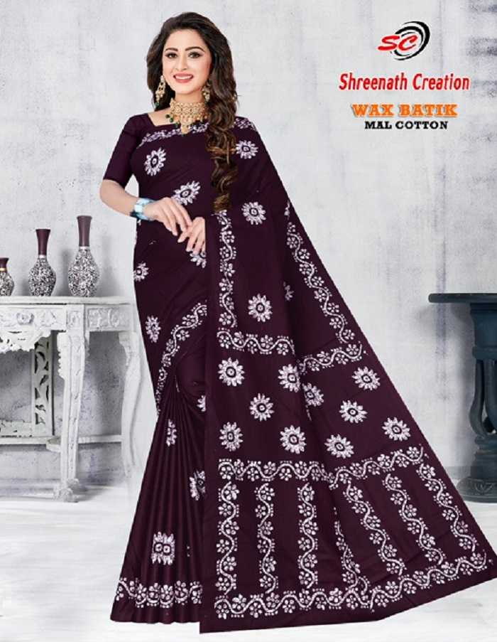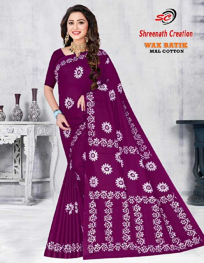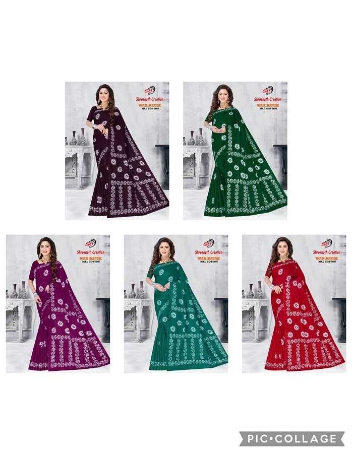 shreenath creation sc rayon wax batic cotton casual wear sarees