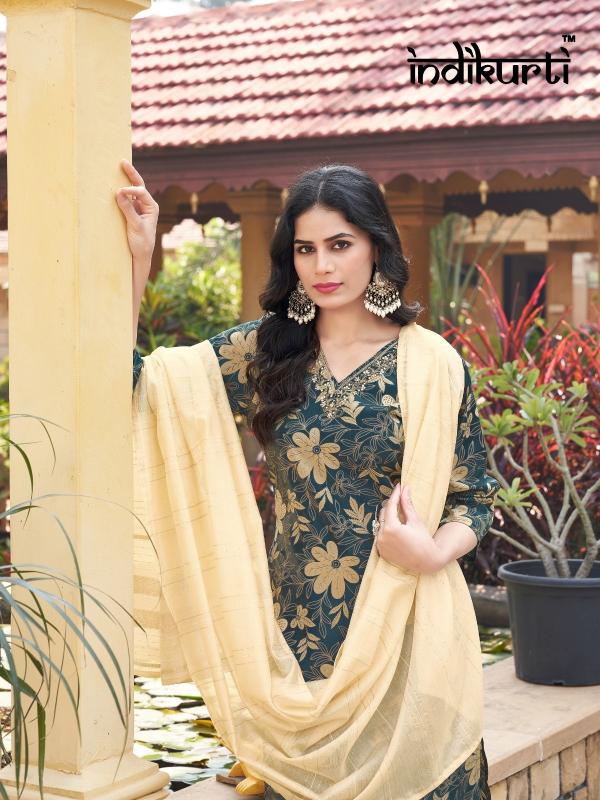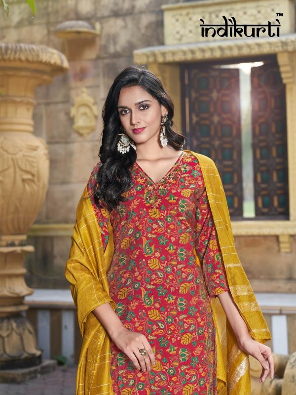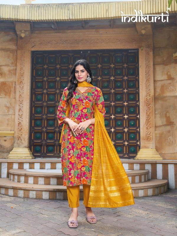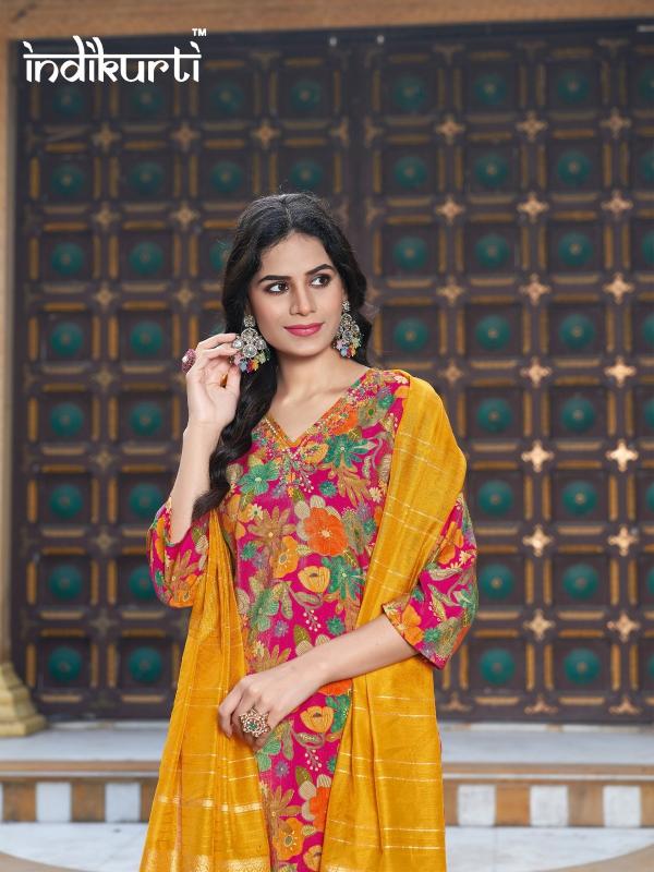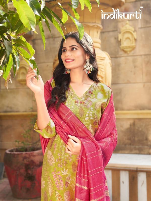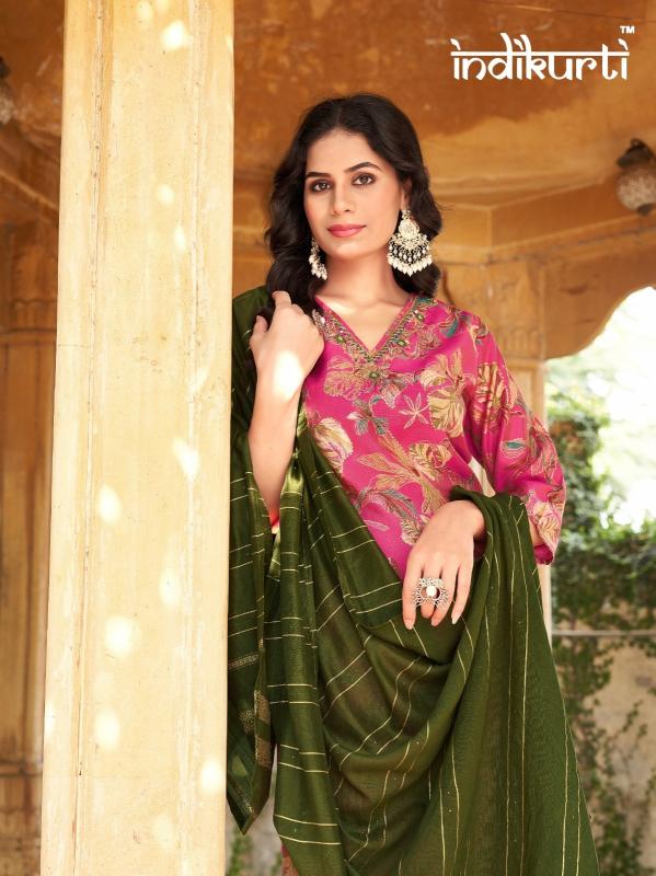 Brand Name : INDIKURTI ITEM NAME : :- SHREYA Designs : 10 DESIGNS 2 COLOURS PER DESIGN Fabric :- WORK :- FANCY HAND WORK DUPATTA :- HEAVY JACUARD STYLE MODAL BOTTOM:- PV ROMAN Size : M(38), L(40), XL(42), 2XL(44) Dispatch Date:- READY |