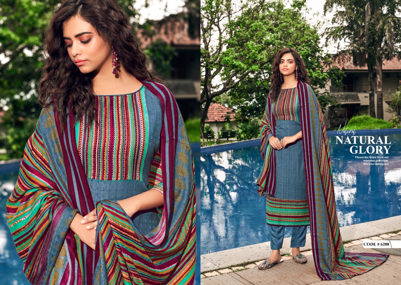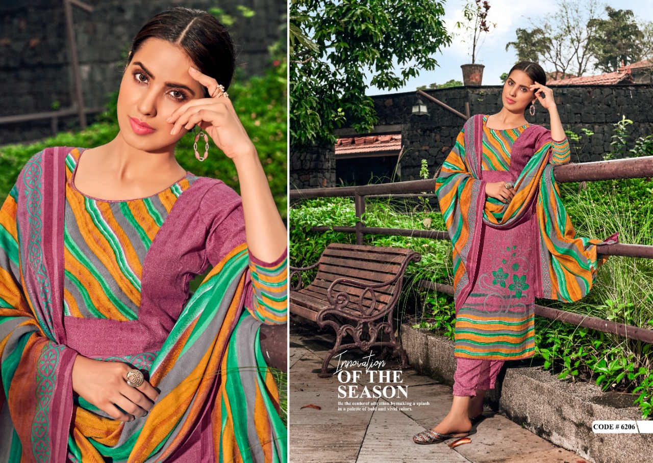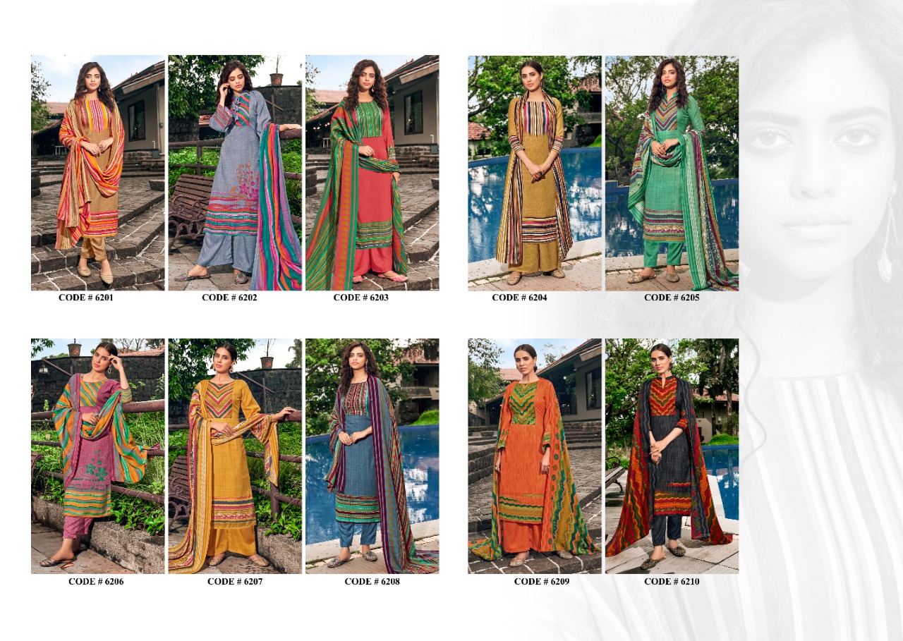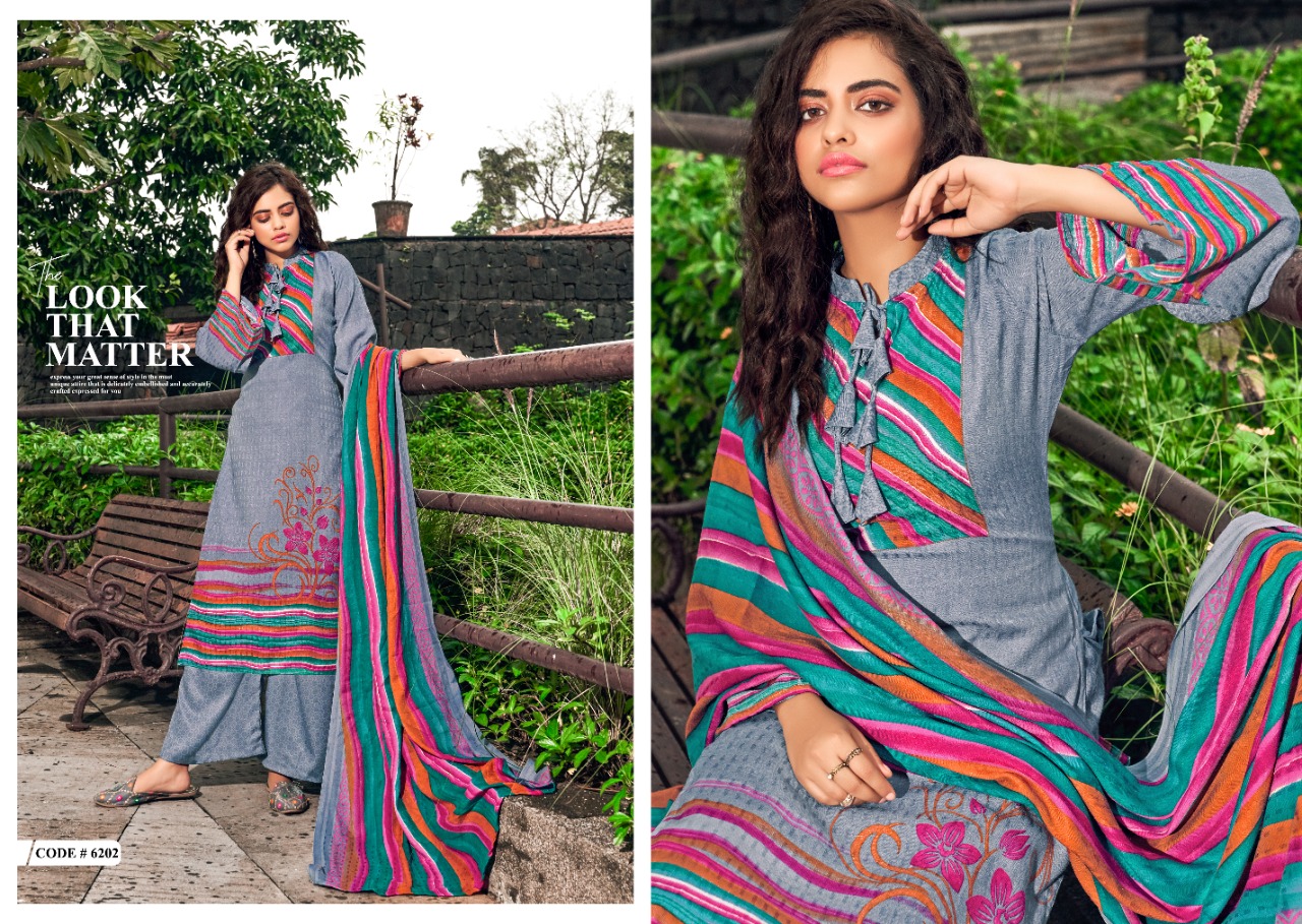 Woolen Suit* Presents SHAHIN 10 Blossom Dresses Fabric Details:- â• Top:- Pure pashmina DOBBY Digital STYAL Print Cut-2.50mtr â• Bottom:-Pure PASHMINA print Cut:- 3 mtr â• Dupatta:- PURE PASHMINA DIGITAL PRINT WITH 2 SIDE PIKU DUPATA Dress :- Pcs Set Rate:- 5⃣5⃣5⃣ + 5⃣%GST Shri Vijay |