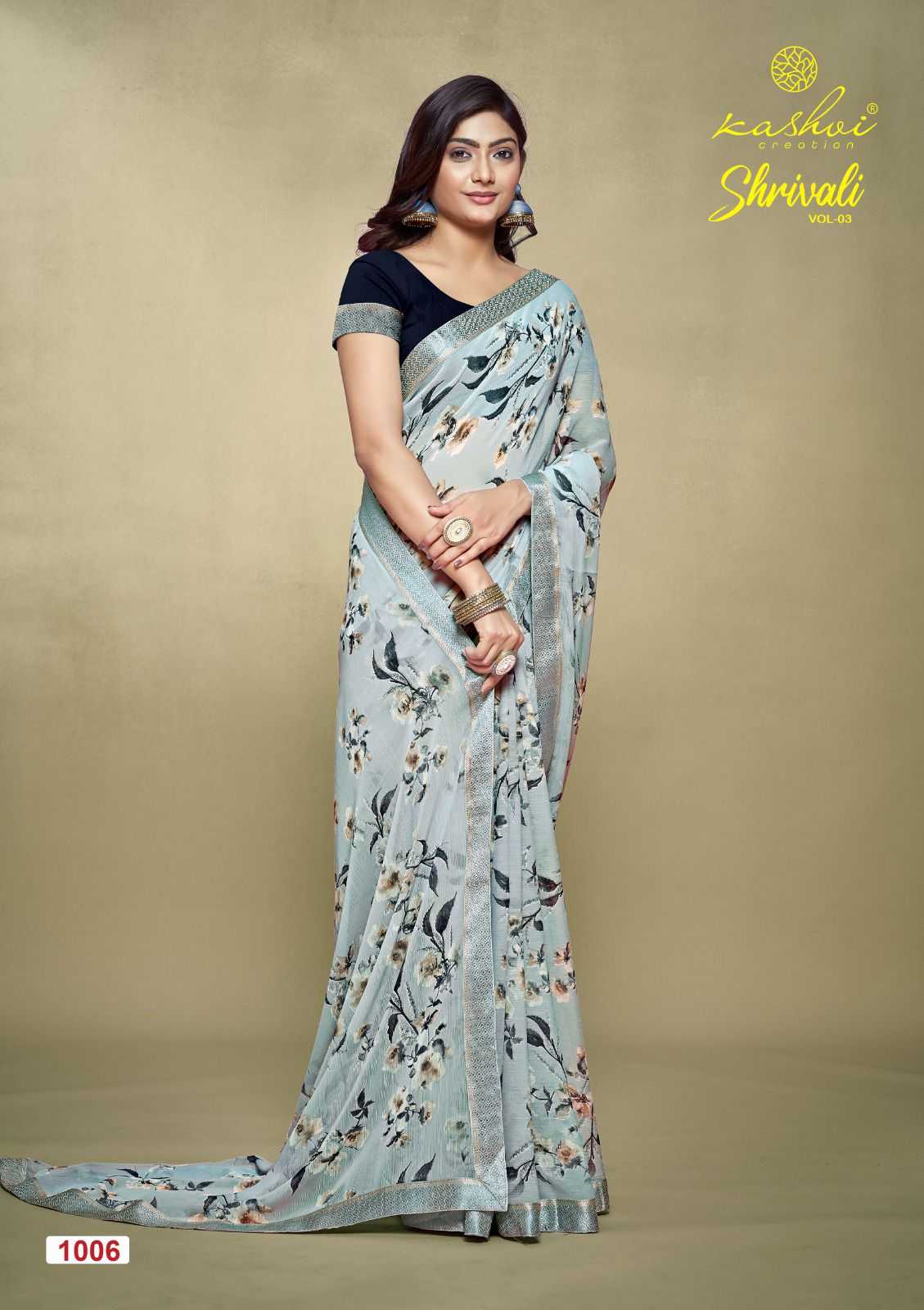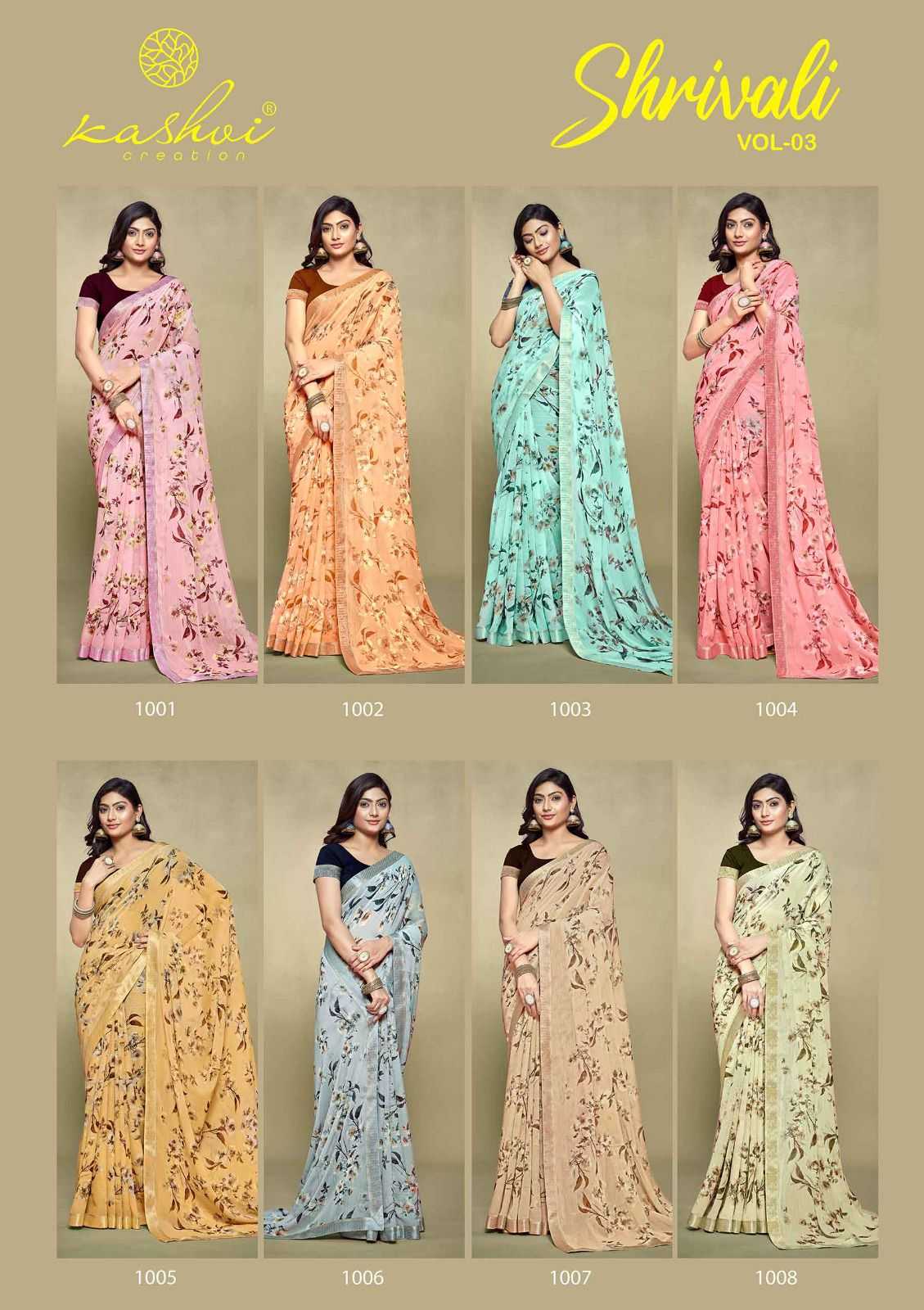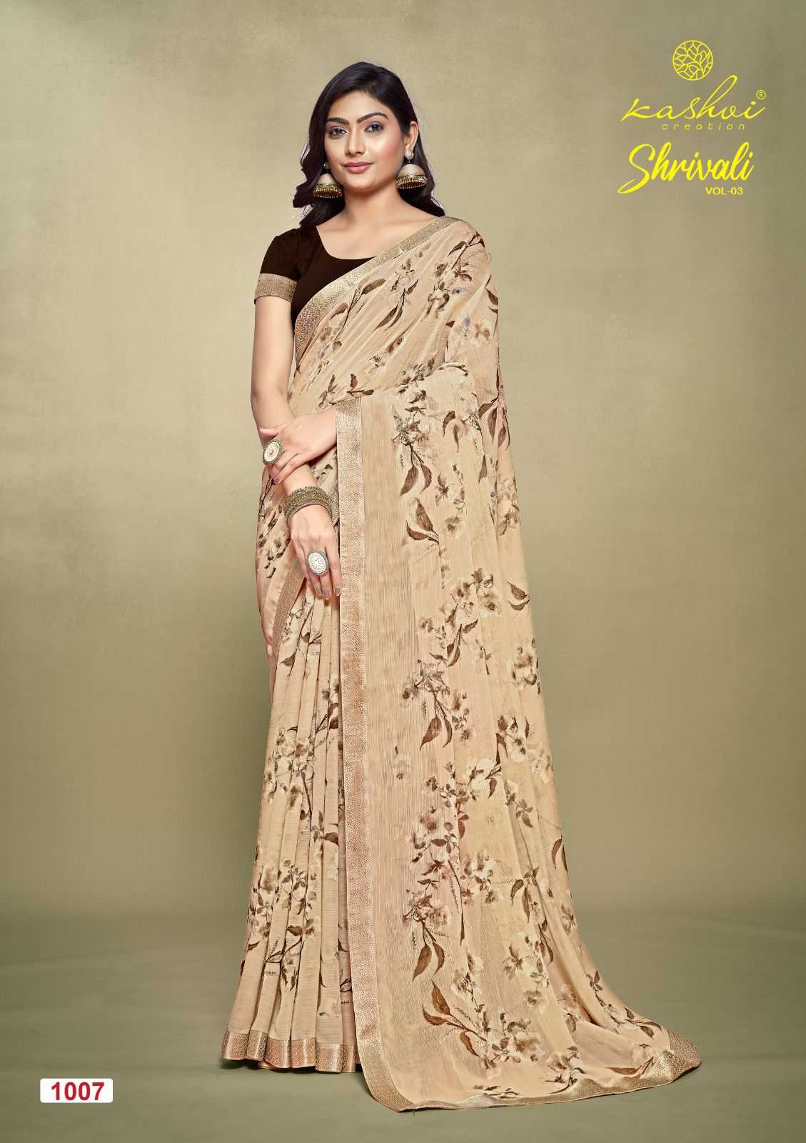 shrivali vol 3 by kashvi creation stylish white cat adorable saree exports