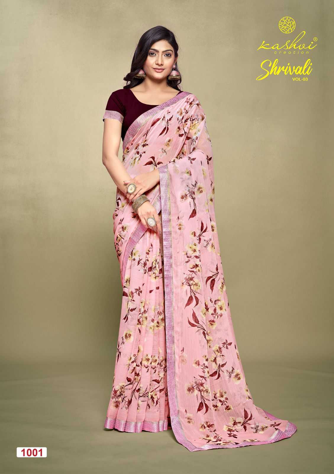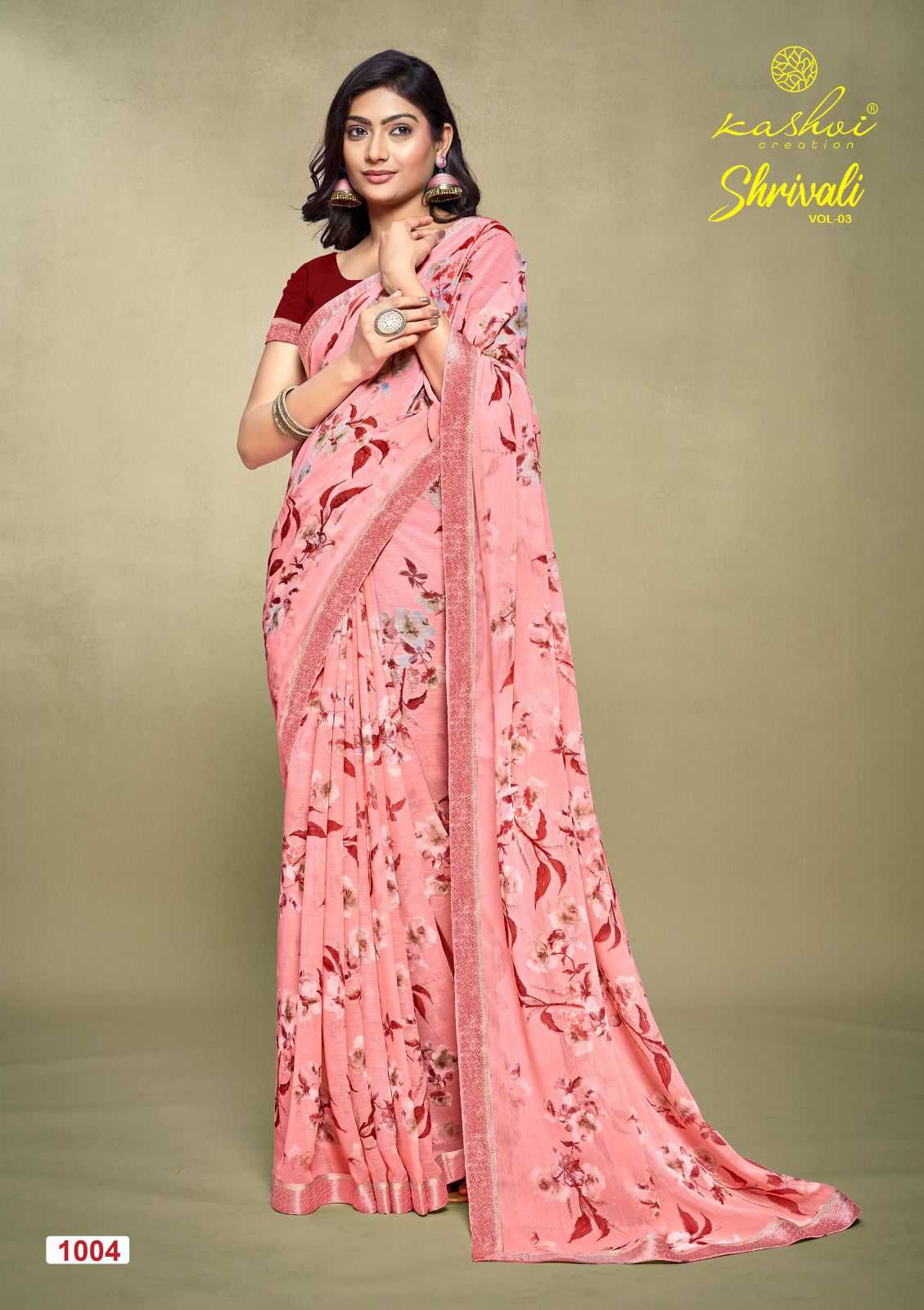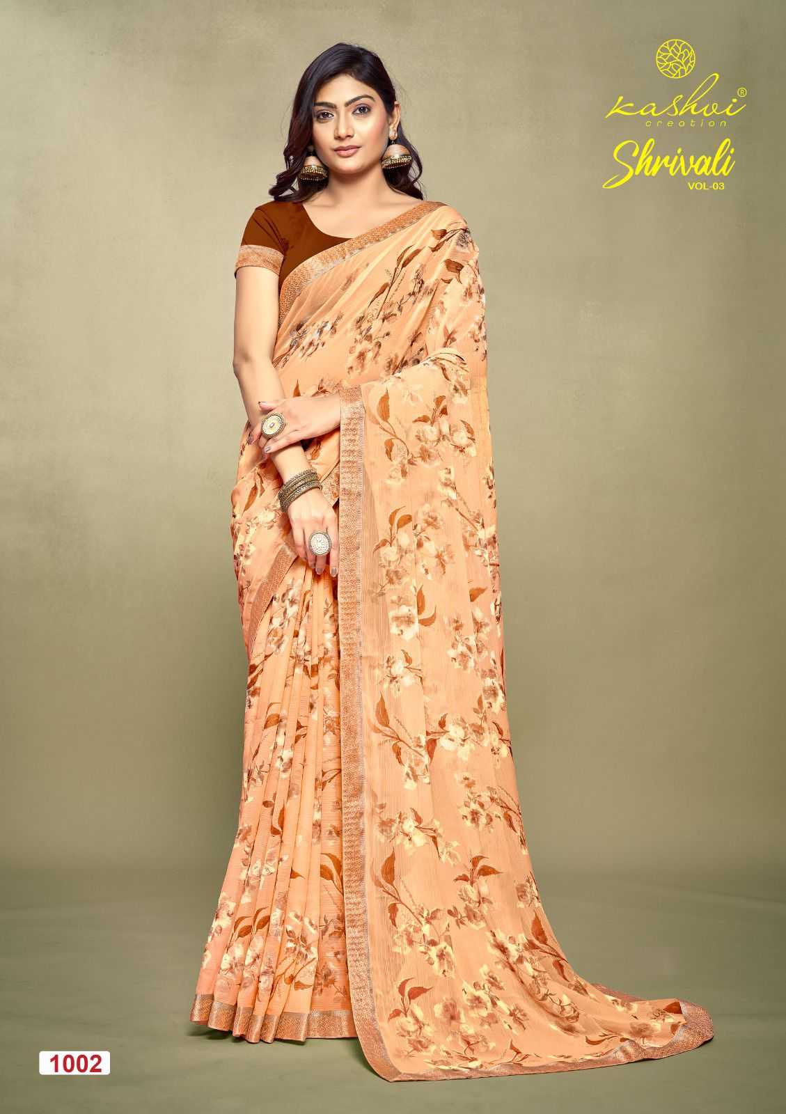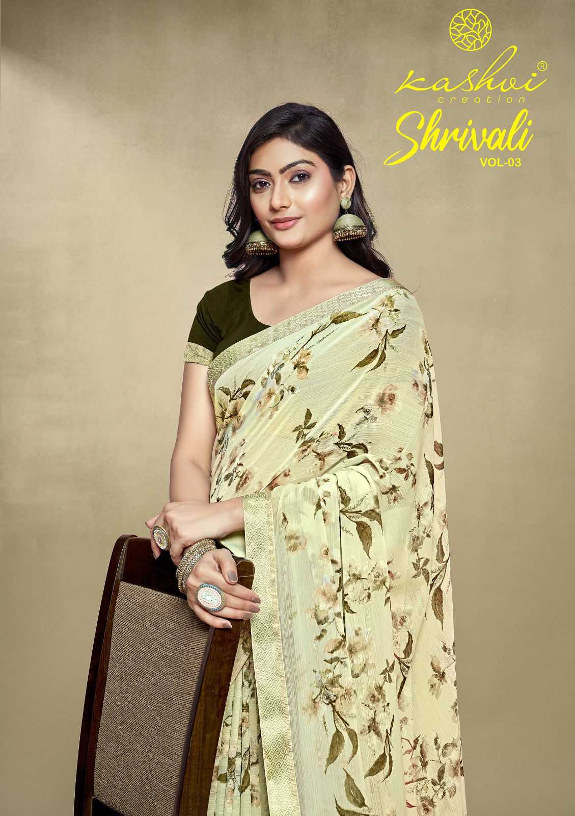 shrivali vol 3 by kashvi creation stylish white cat adorable saree exports