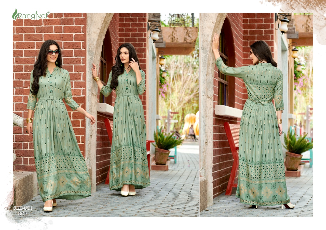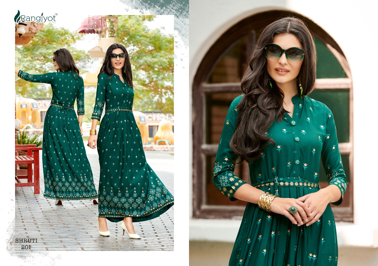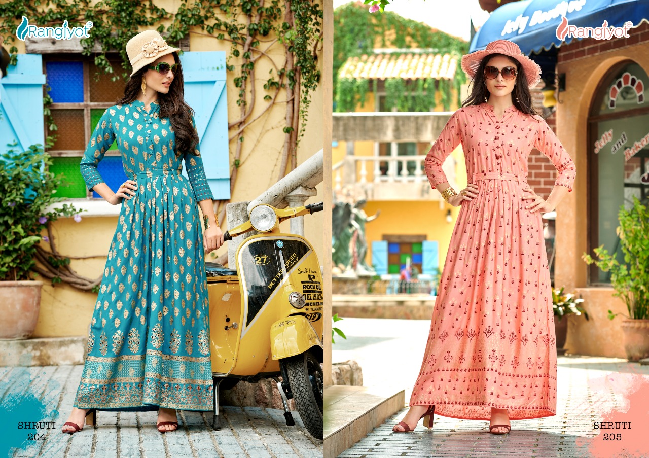 Shruti Vol 2 By Rangjyot Rayon Party Wear Long Gown Collection