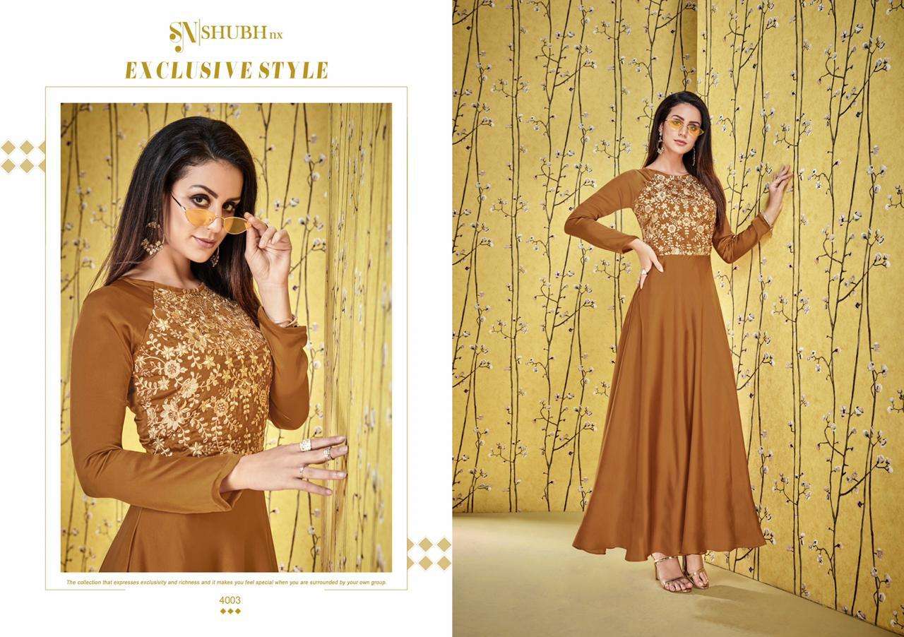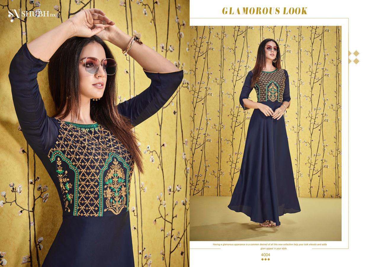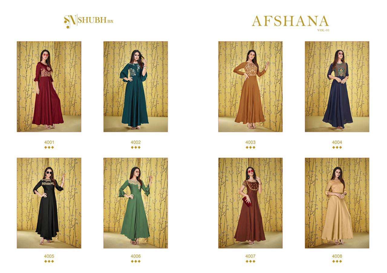 shubh nx afshana vol 1 long gown style designer kurtis wholesaler