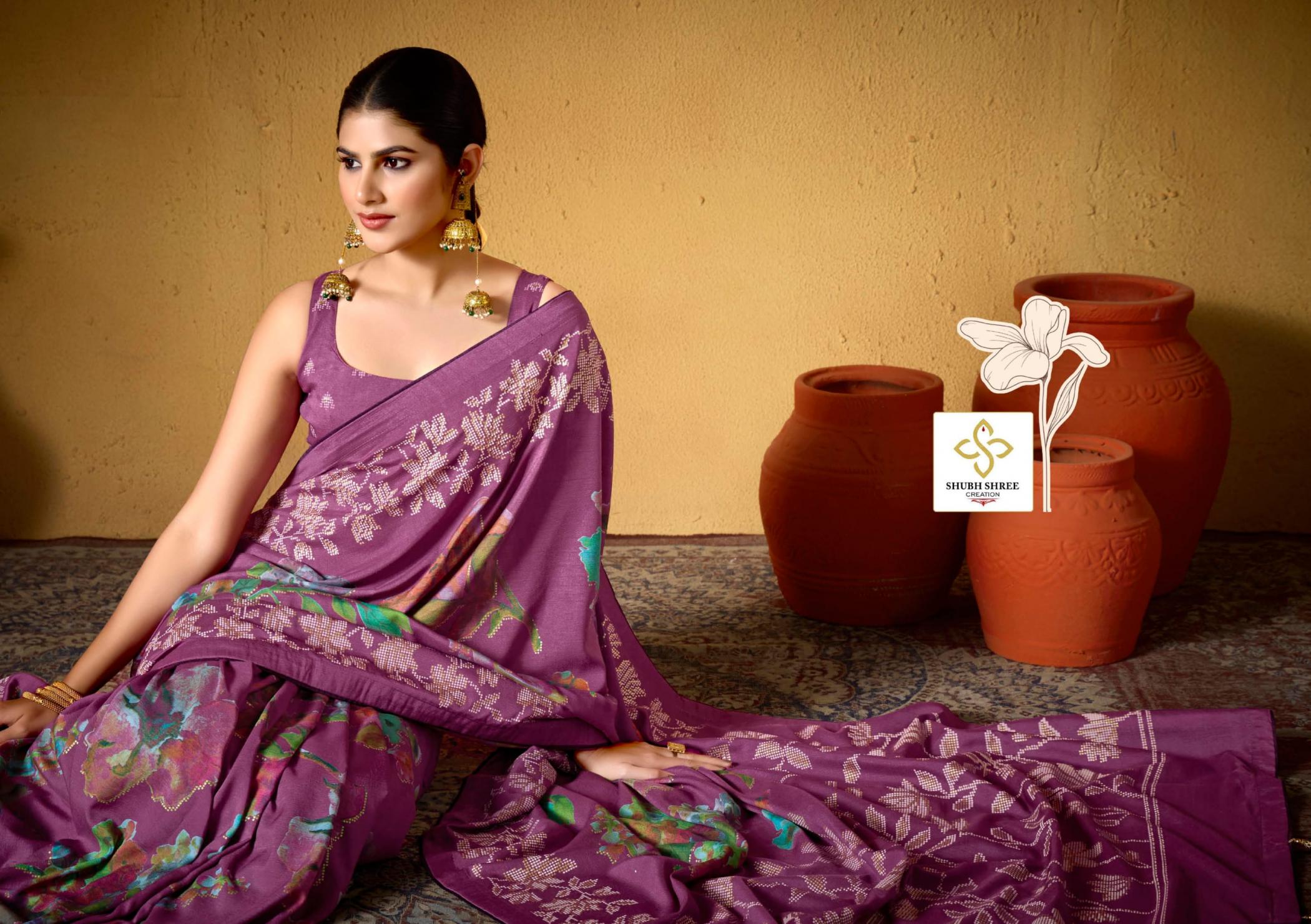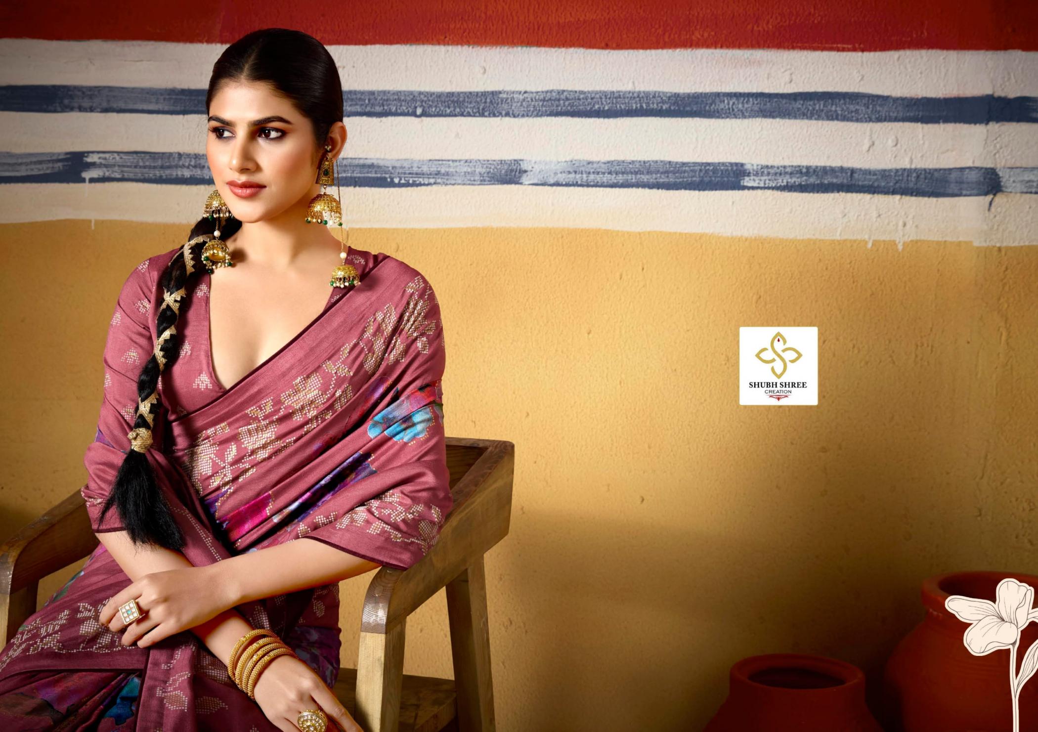 shubh shree creation casamia velvet tusser silk designer saree for womens