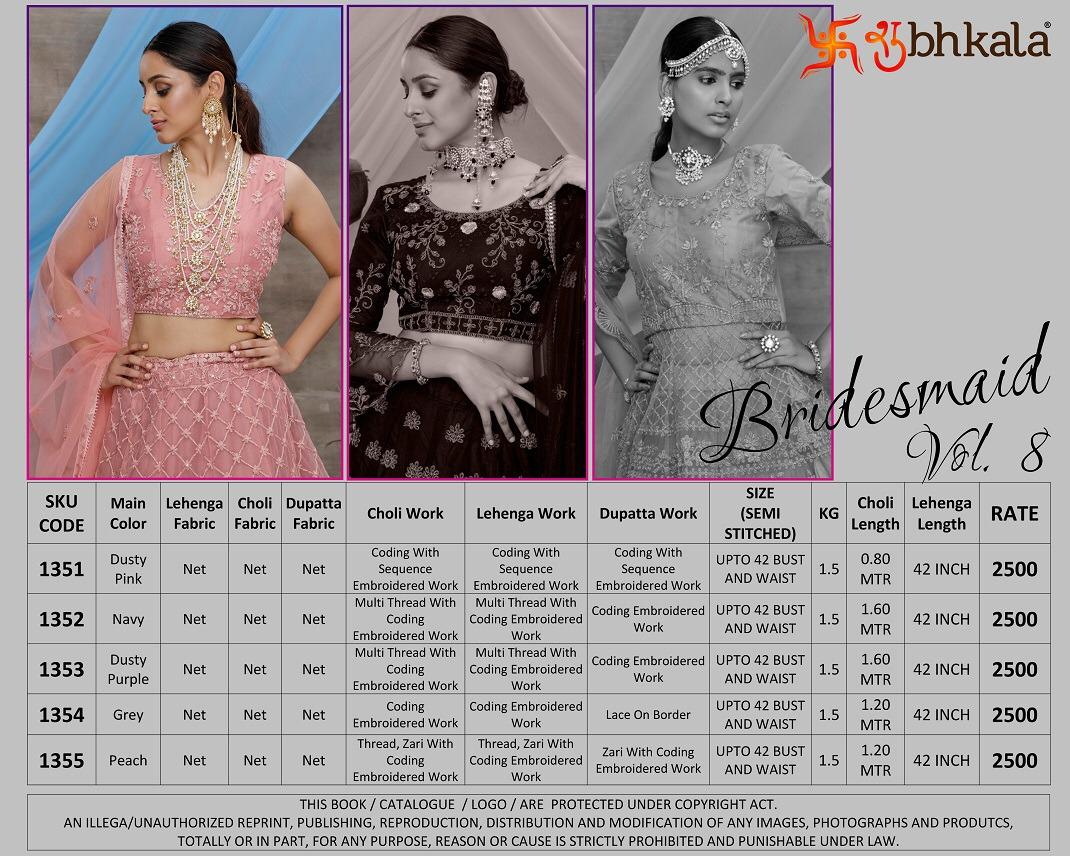Shubhkala Bridesmaid Vol 8 Exclusive Designer Net 1331-1335 Series Lehenga