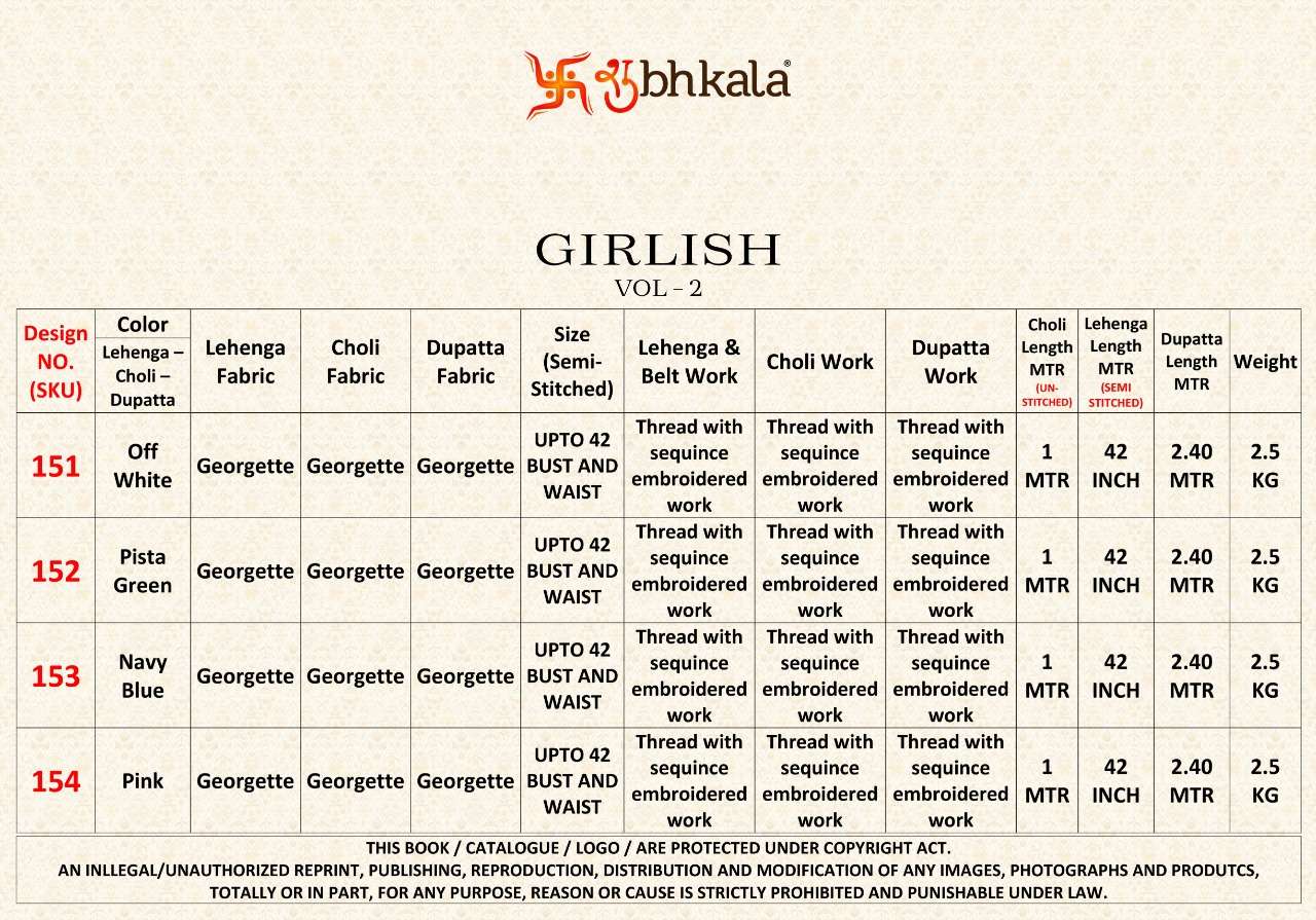 🌺 SHUBHKALA 🌺 🌻 GIRLISH VOL. 2 🌻 👗 New Exclusive Embroiered Semi Stitched Bridal Lehenga Choli Collection 👗 💰 RATE LIST 💰 151: 3300/- Choli Length: 1 MTR. Real Pic Available. 👗 🧺 Wash & Care Instructions. 🧺 ⚠️ NOTE:: ⚠️ |