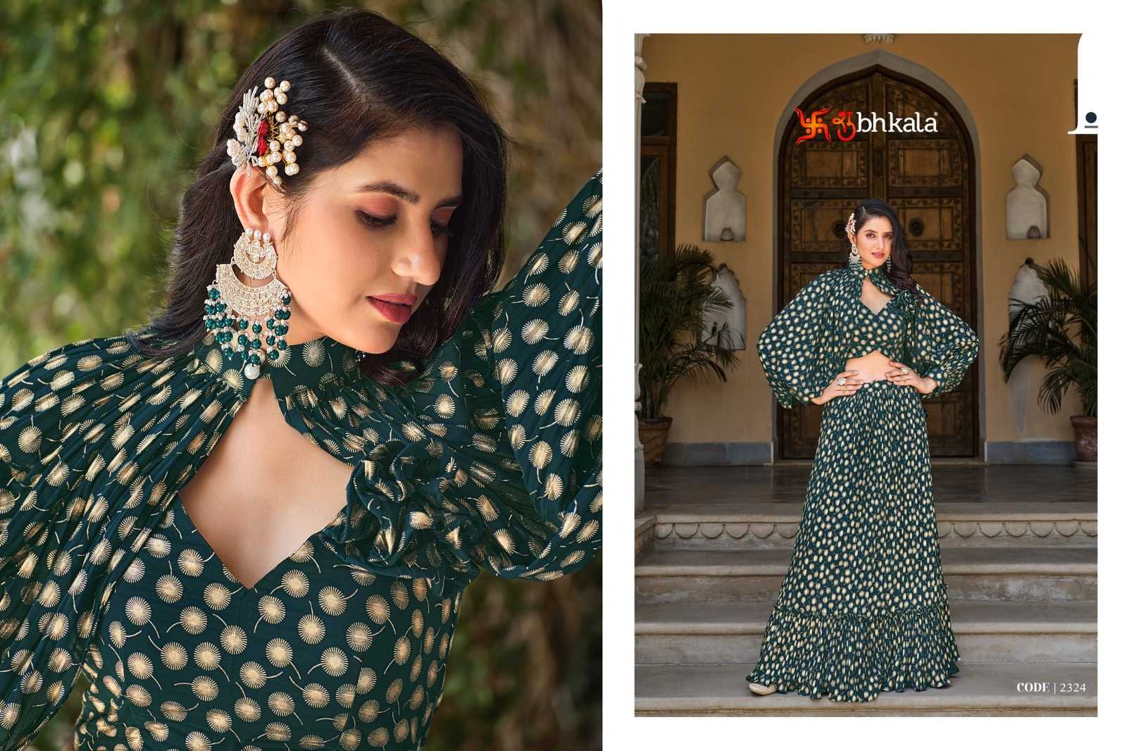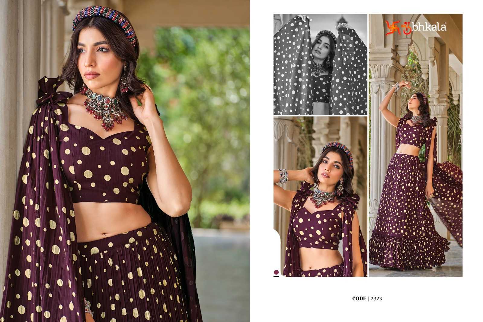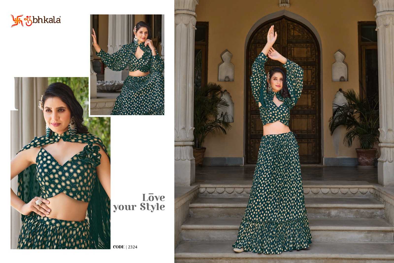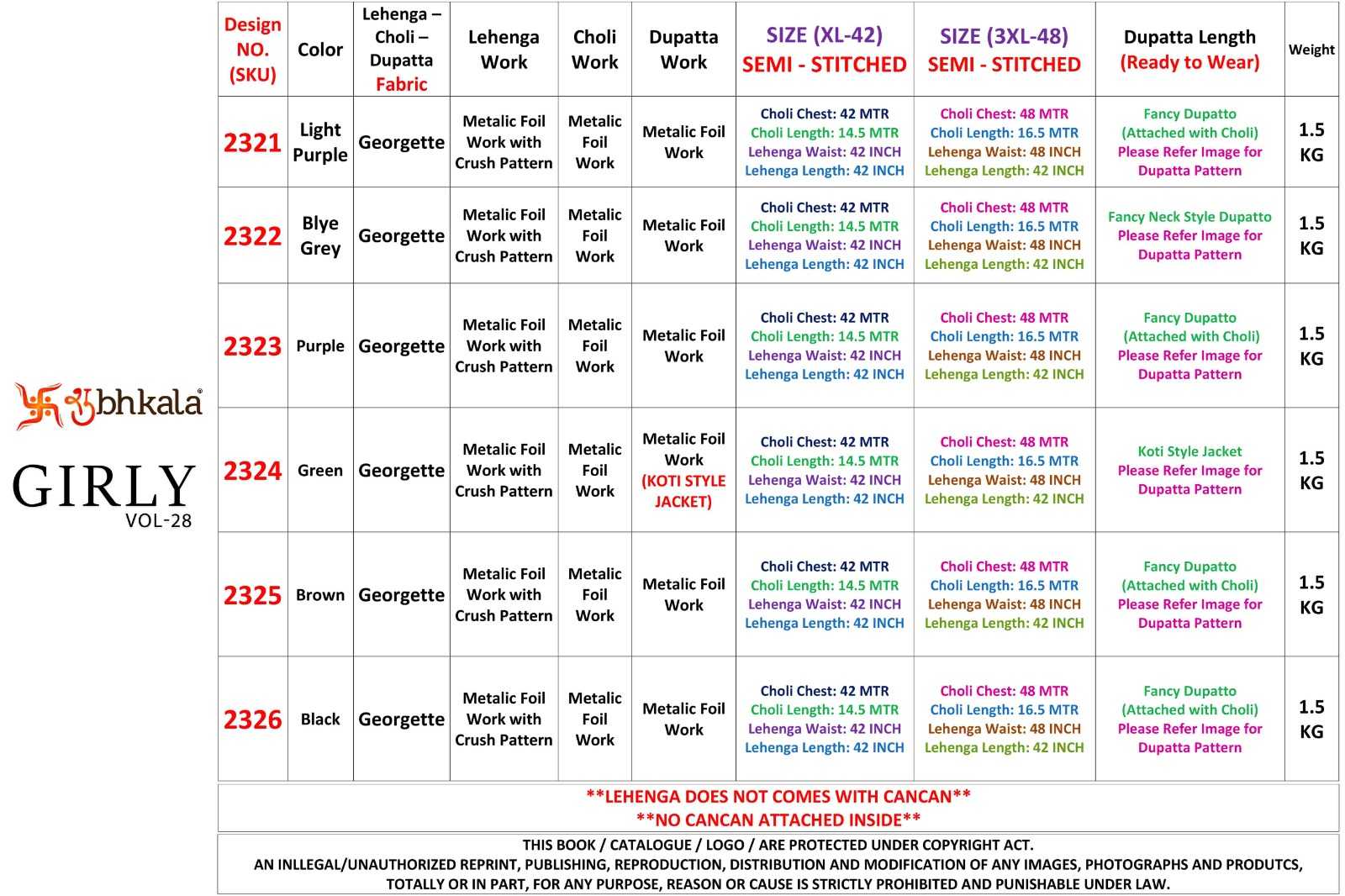 🎭 SHUBHKALA 🎭 🛍 GIRLY VOL. 28 🛍 New Exclusive Foil Printed Stitched Lehenga Choli with Fancy Dupatta Collection 💵 GIRLY VOL. 28 • RATE LIST 💵 2321: 2000/- Dupatta Length: 2.30 MTR. |
