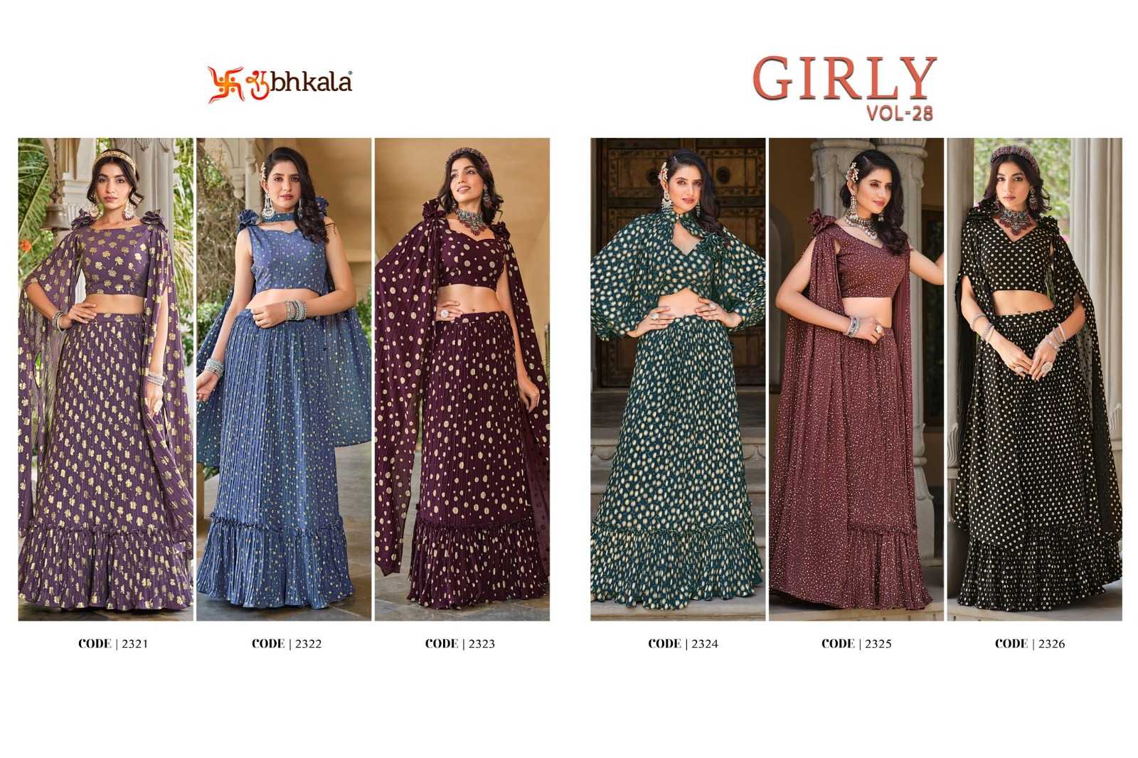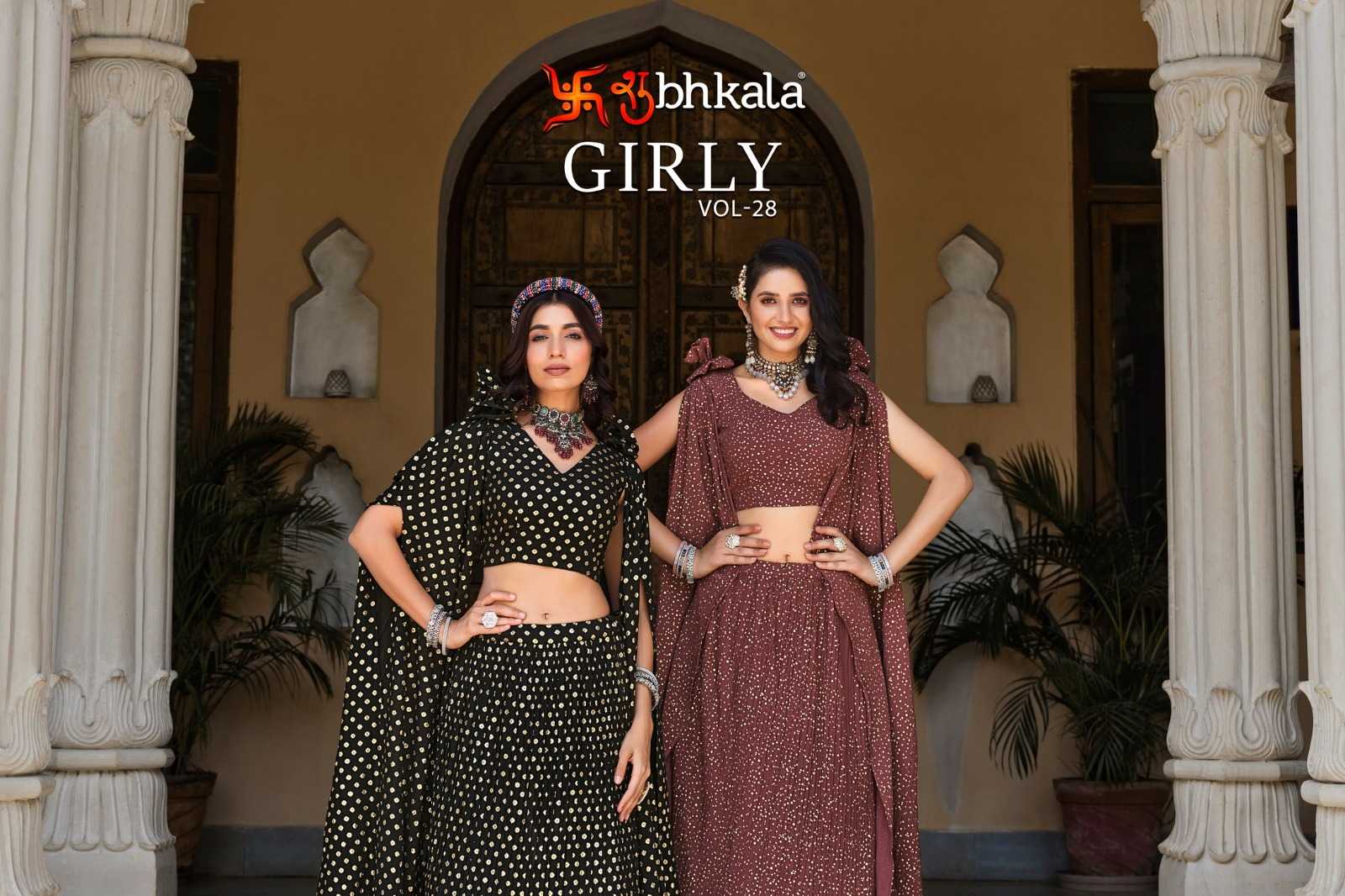 shubhkala girly vol 28 very stylish designer fullstitch lehenga choli dupatta