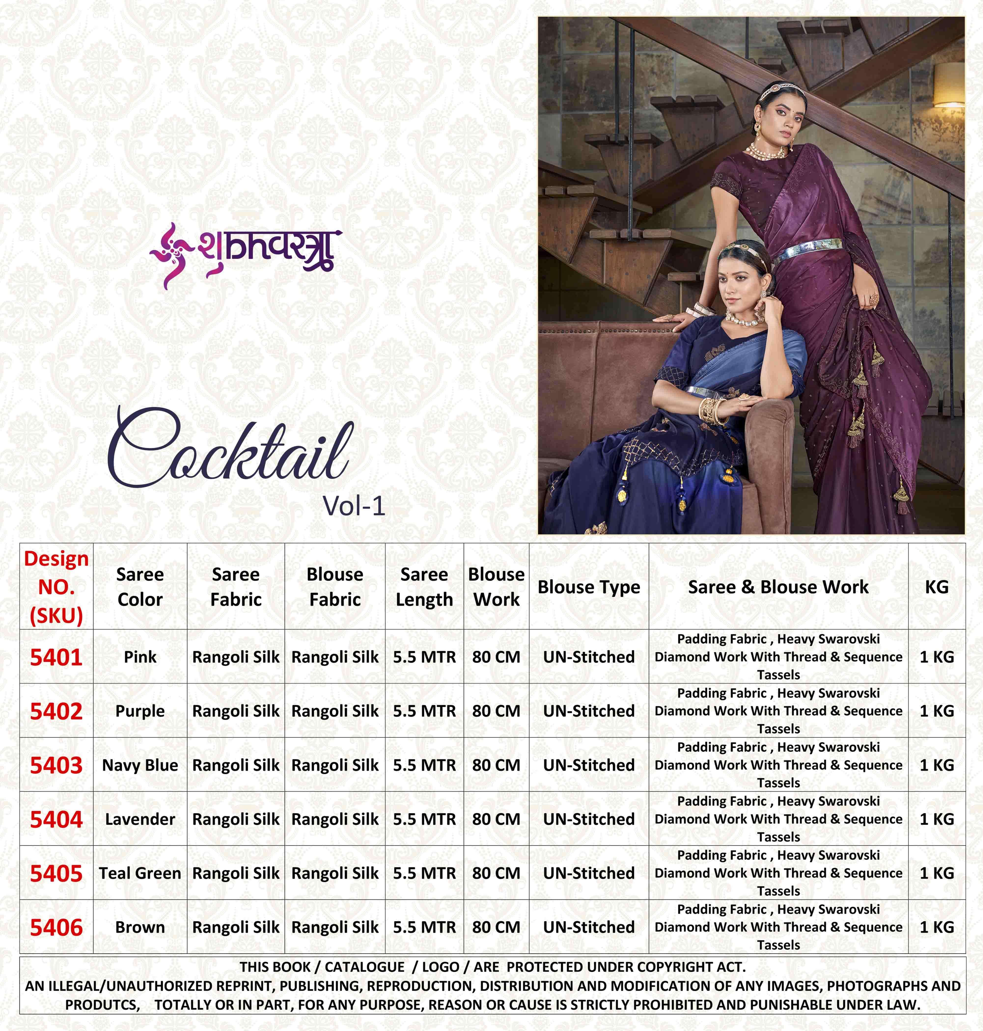 🌺 SHUBHVASTRA 🌺 👗 New Exclusive Rangoli Silk Saree Collection 👗 💰 COCKTAIL VOL. 1- RATE LIST 💰 5401: 1450/- Saree Length: 5.5 MTR. Real Pic Available. 👗 ⚠️ NOTE:: ⚠️ |