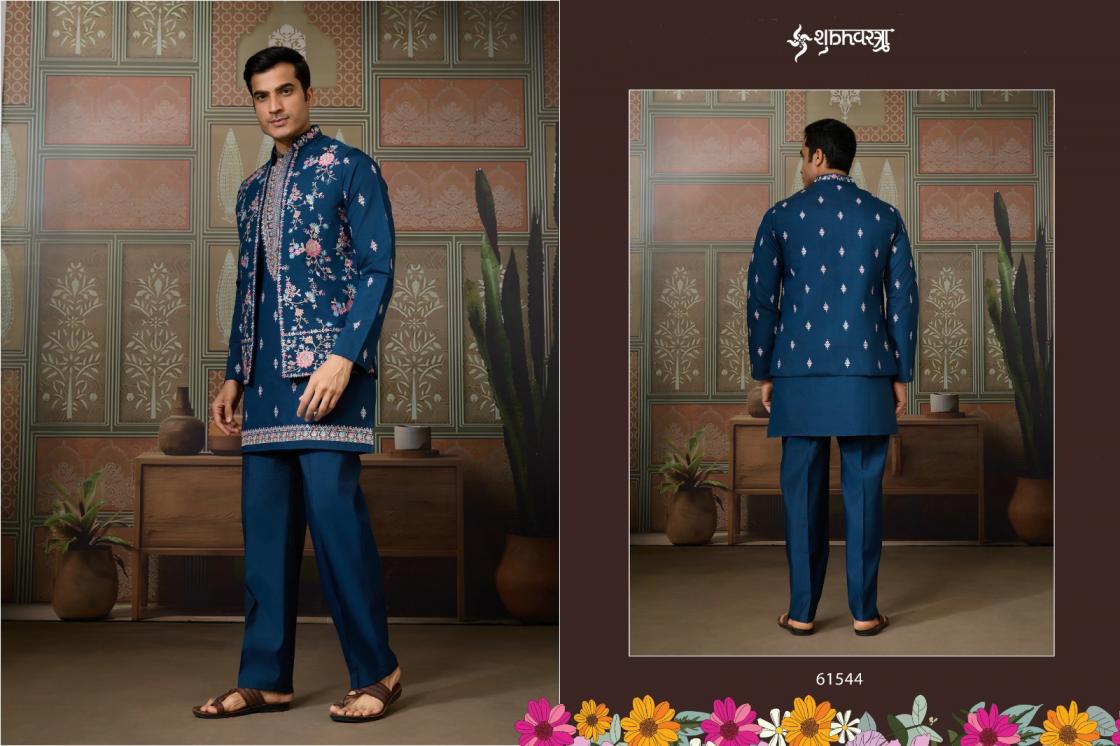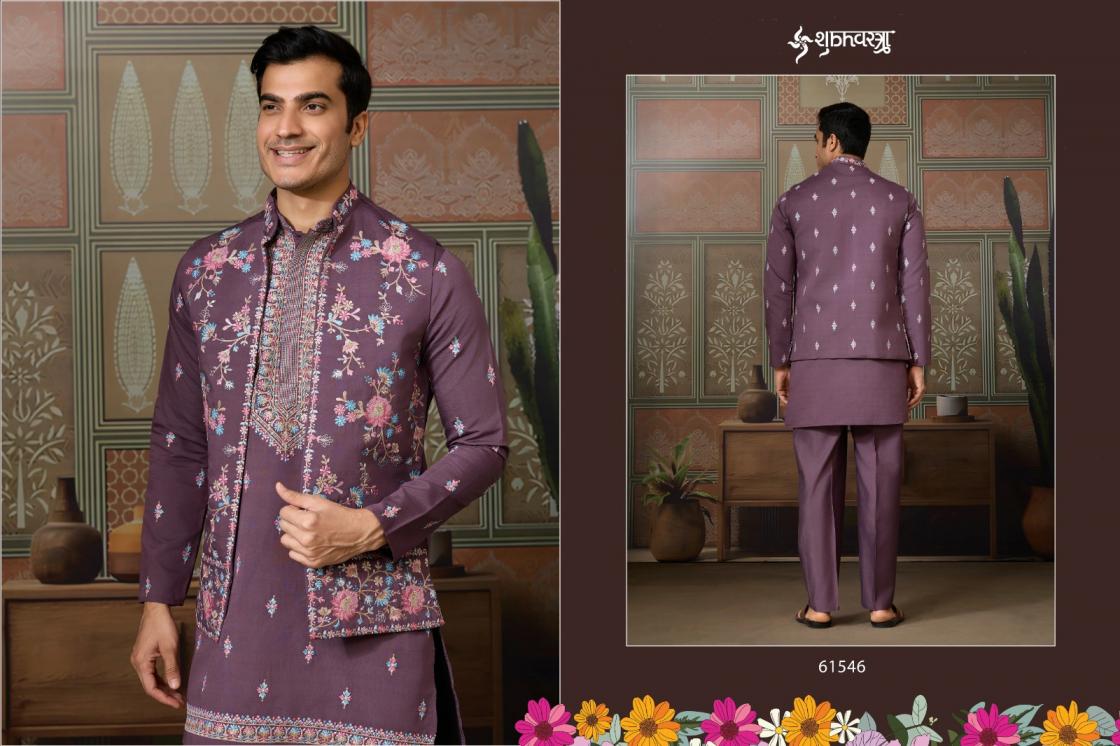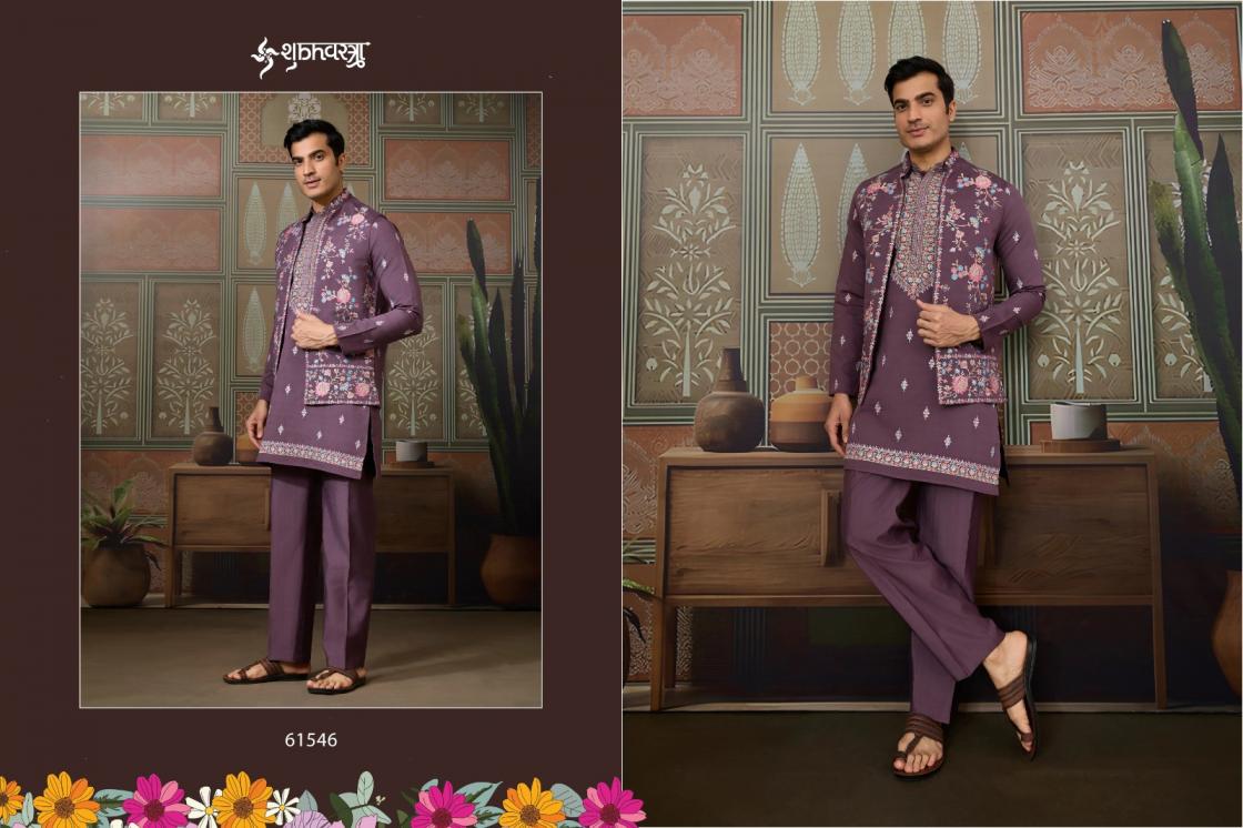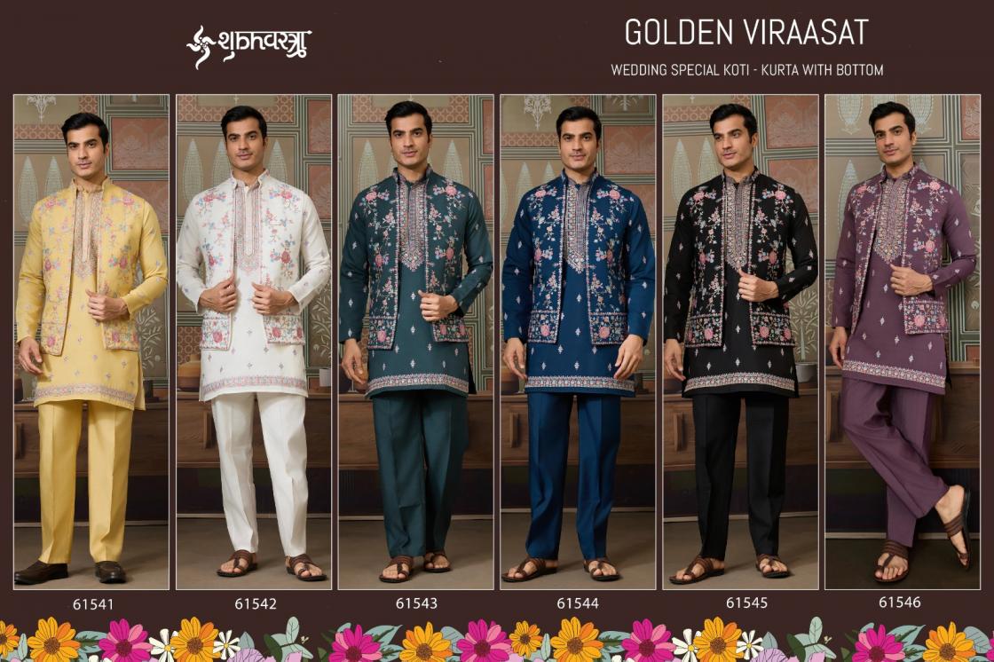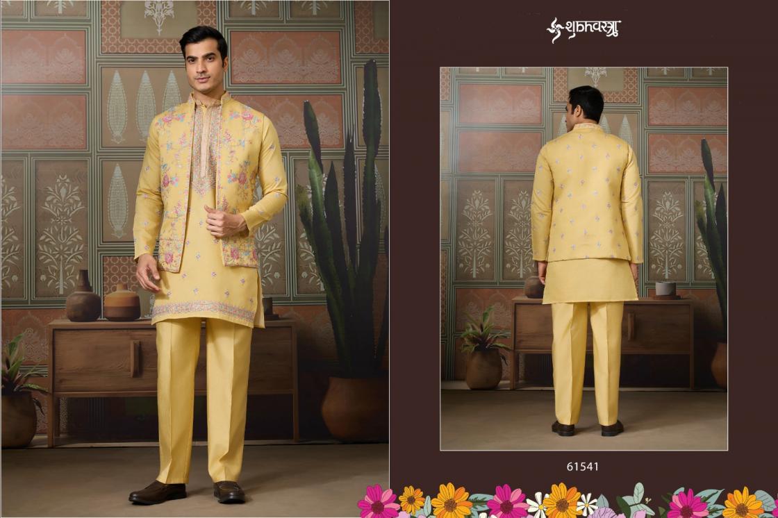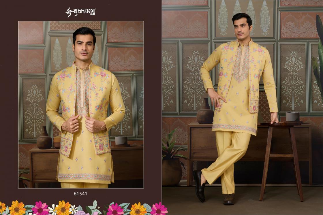 shubhvastra golden viraasat readymade viscose silk stylish mens kurta pant with koti